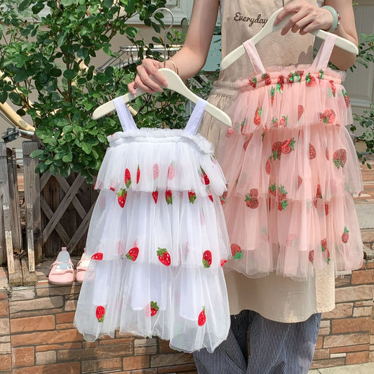 فستان أطفال من التول متعدد الطبقات بلون الفراولة
