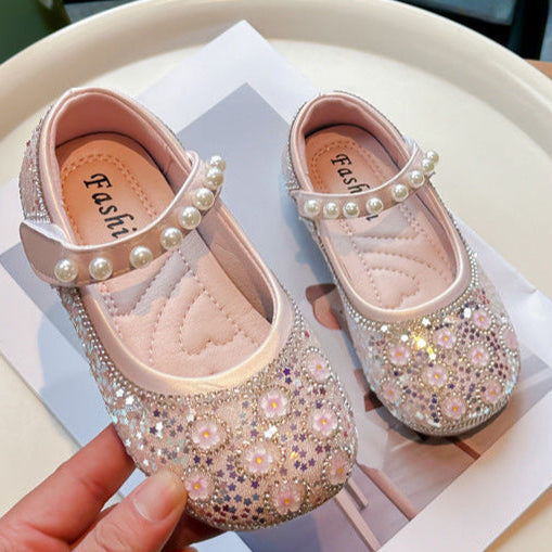 أحذية أطفال لامعة مرصعة بأحجار الراين للبنات