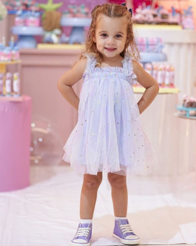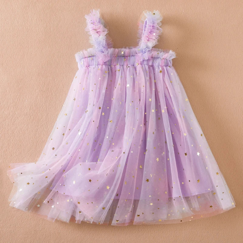 فستان أطفال من التول الملون بالنجوم