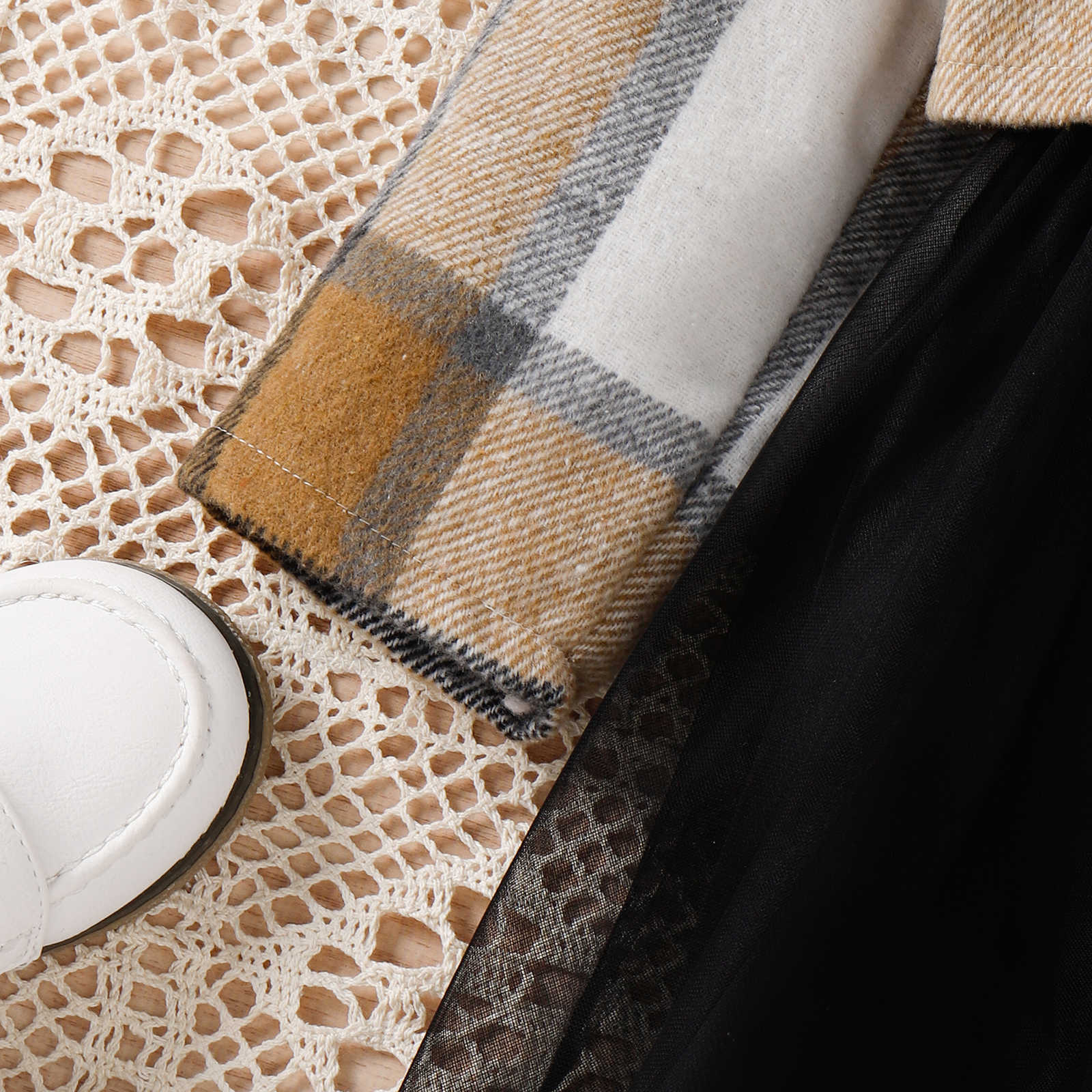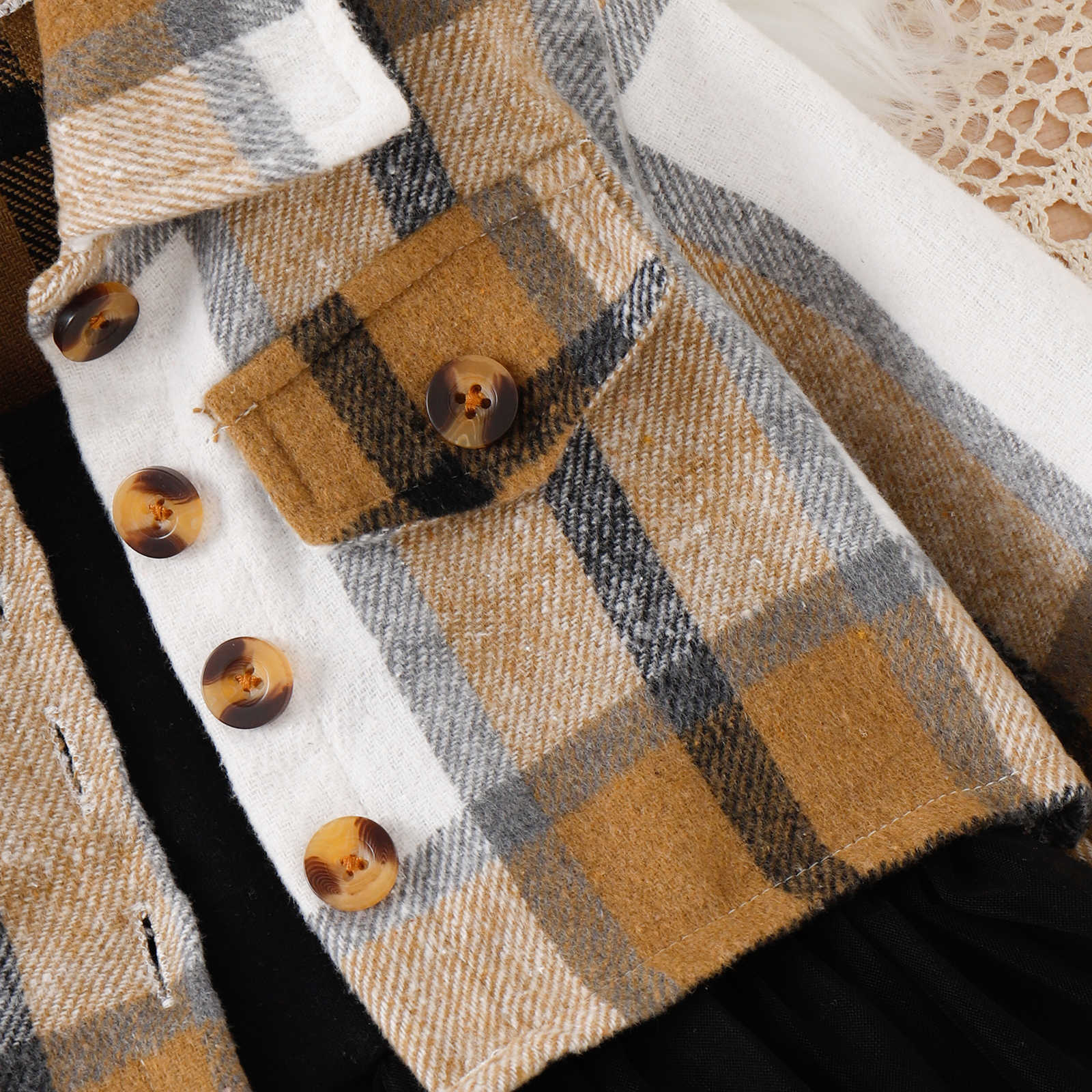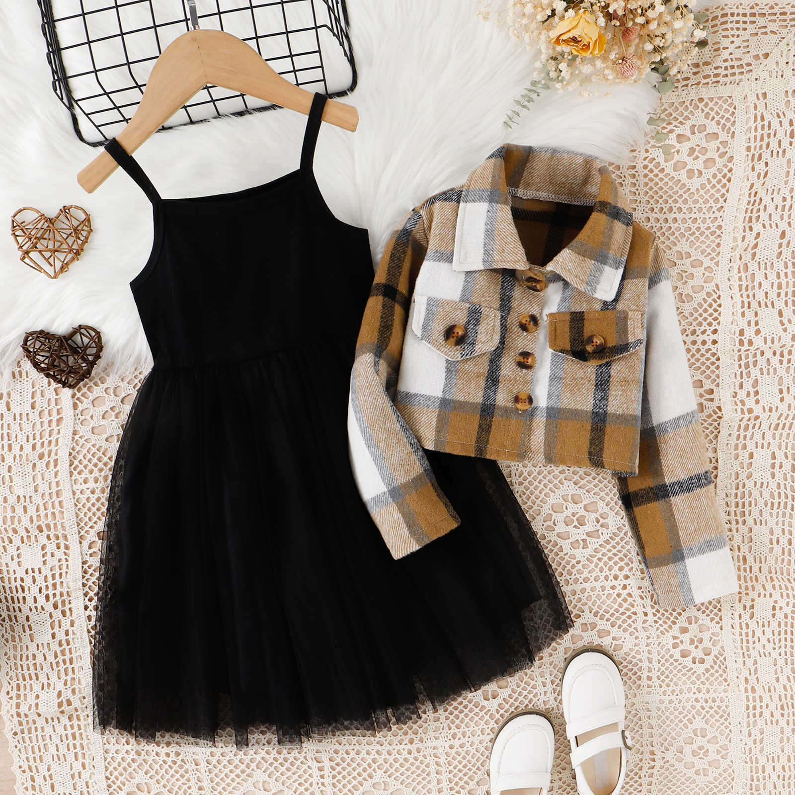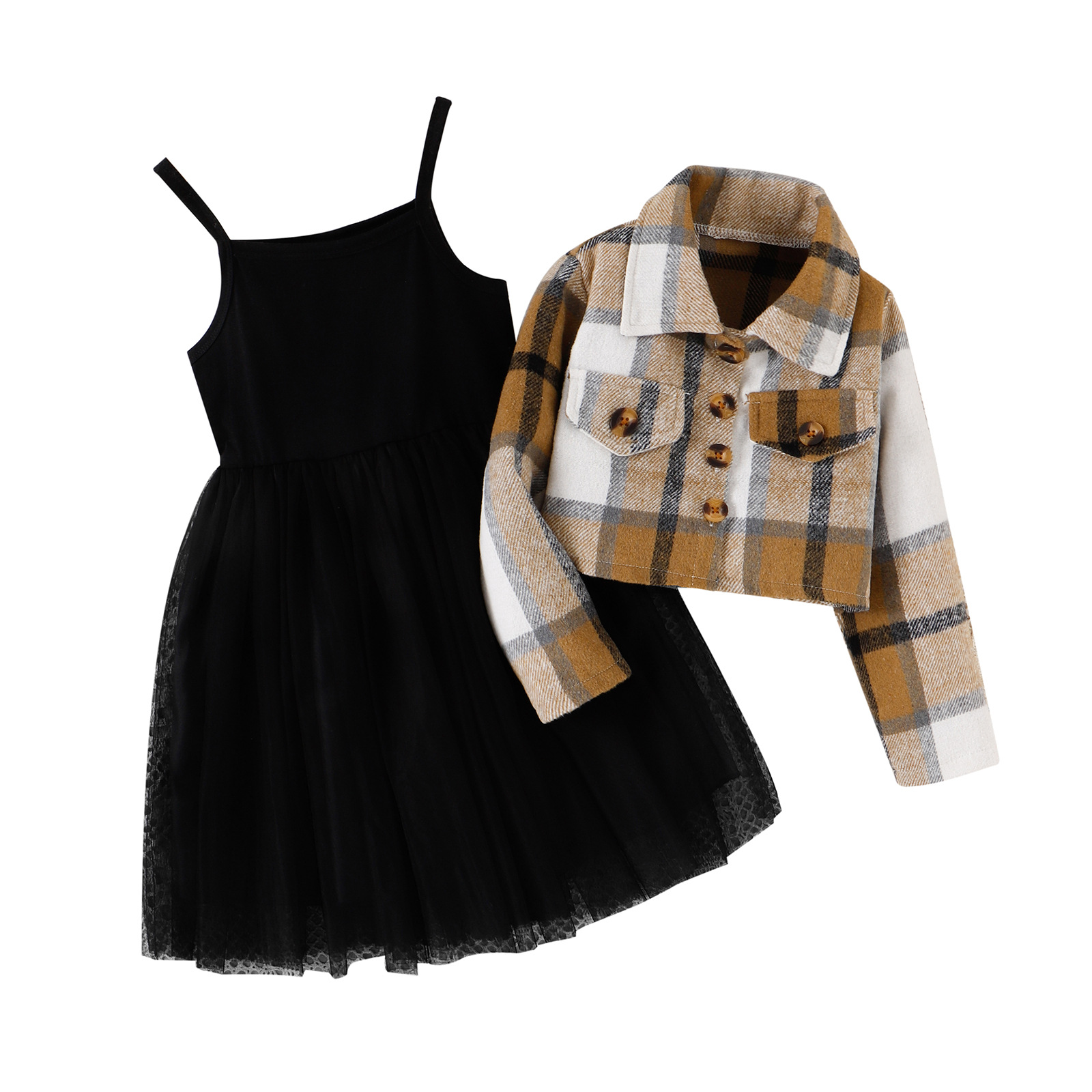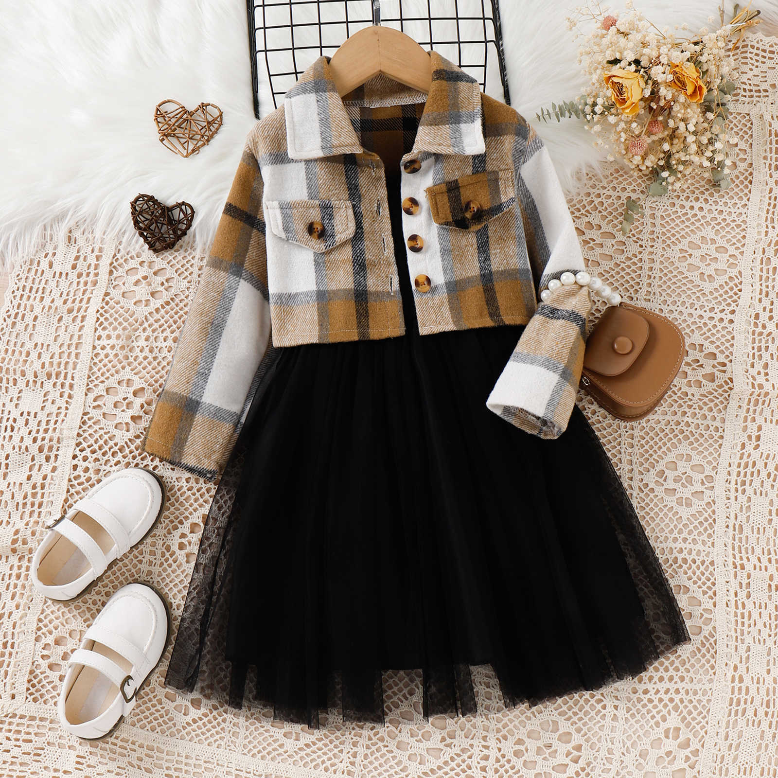 فستان أطفال أسود + معطف منقوش