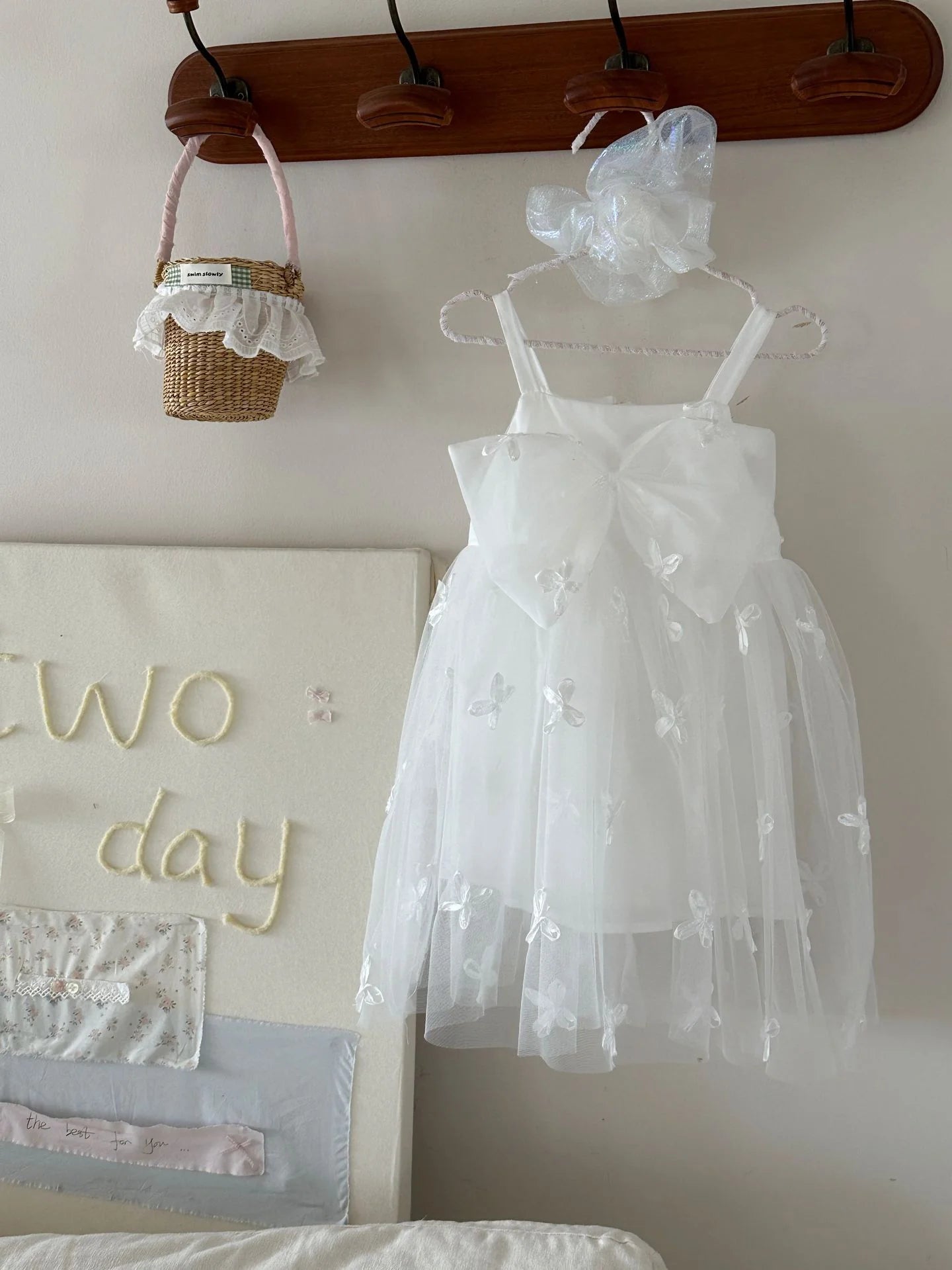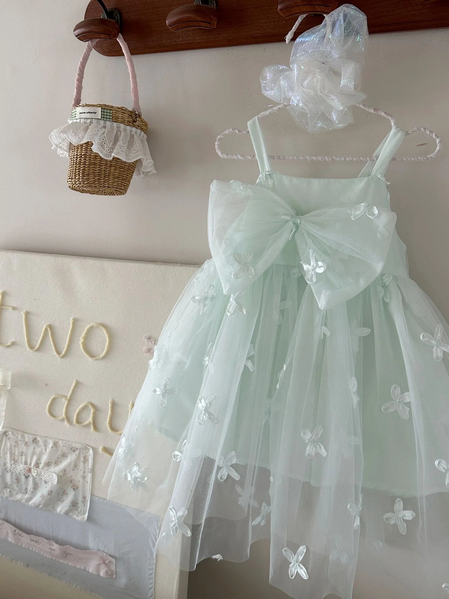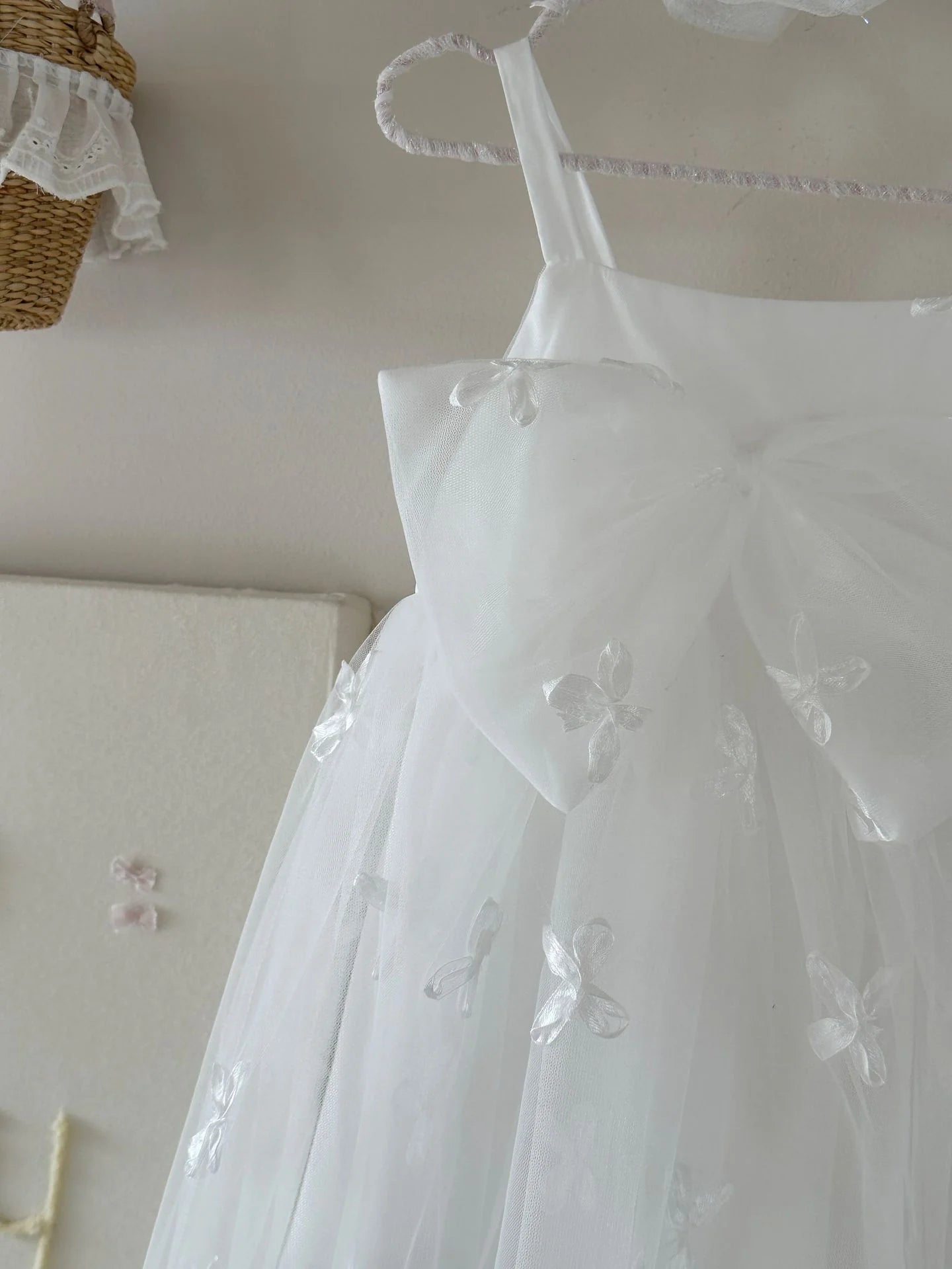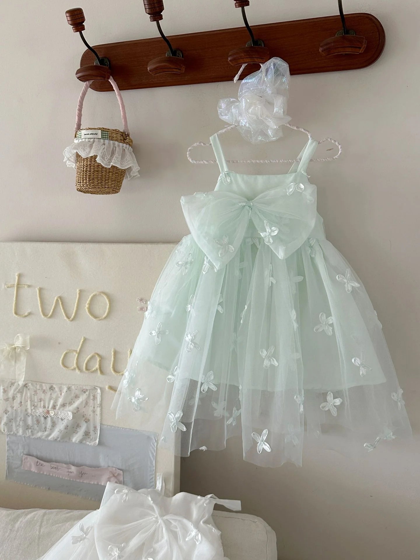فستان أطفال بحاشية مطوية وزهرة صغيرة