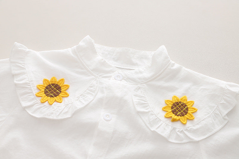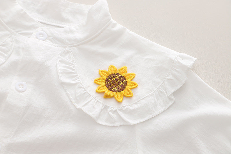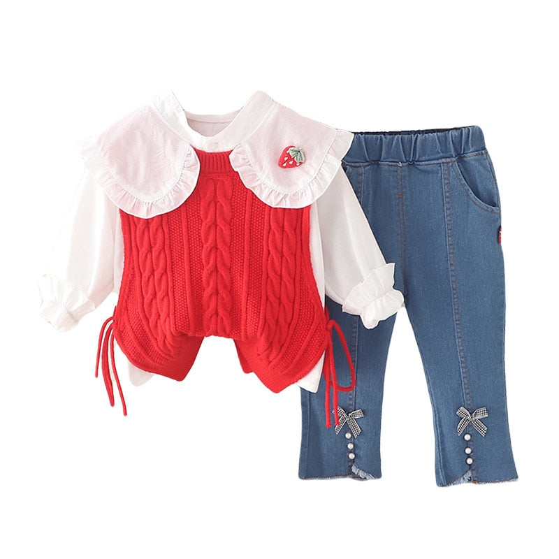 طقم أطفال 3 قطع سترة وبلوزة مع ياقة مطرزة