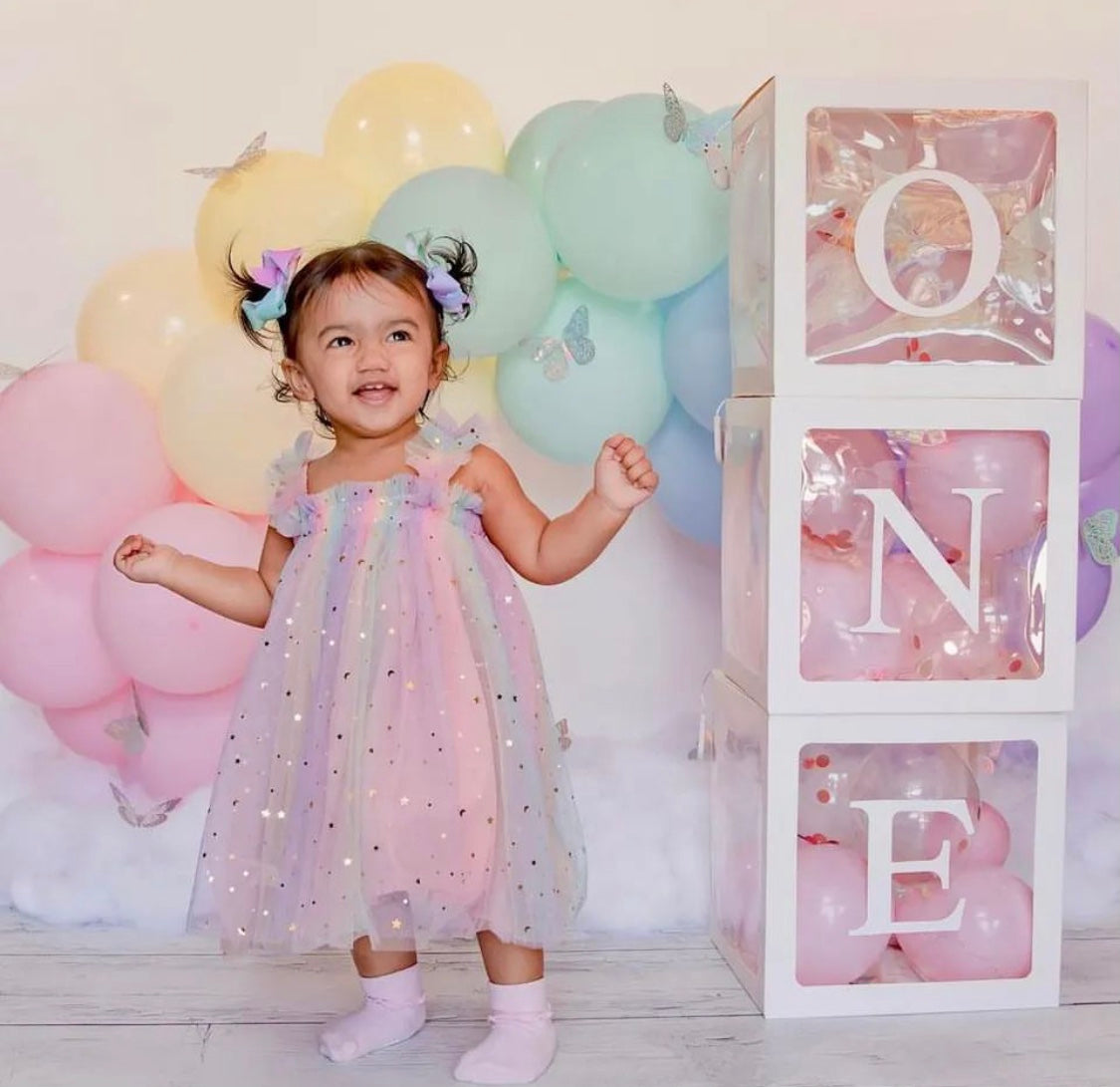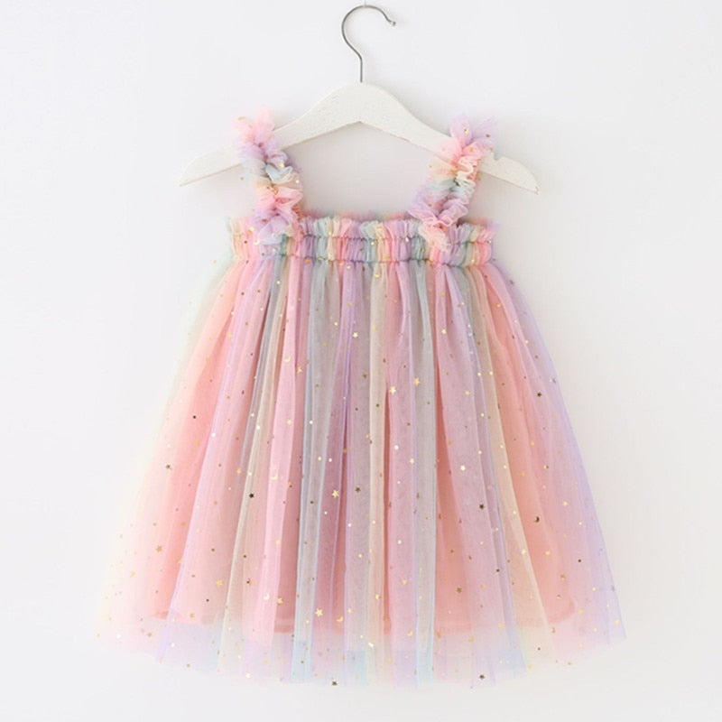 فستان أطفال رقيق مع التول والنجوم الصغيرة