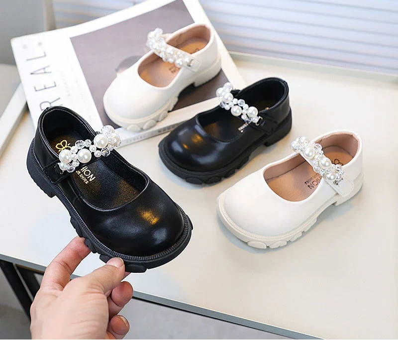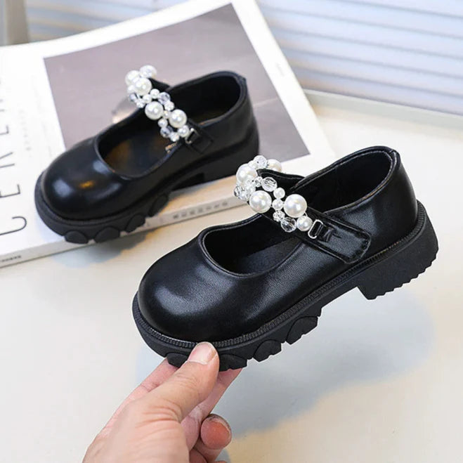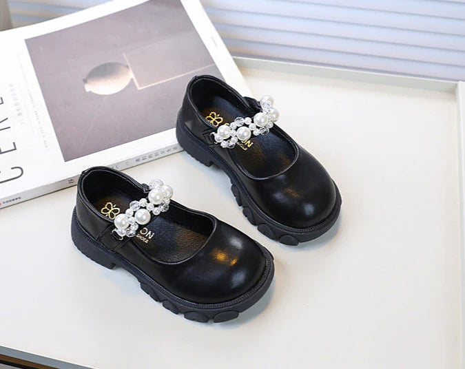 حذاء لؤلؤي بنعل عالٍ للبنات