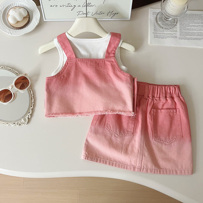 طقم جينز بأزرار للبنات الرضع، 3 قطع