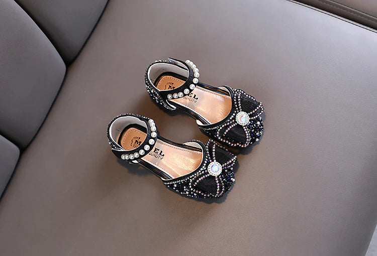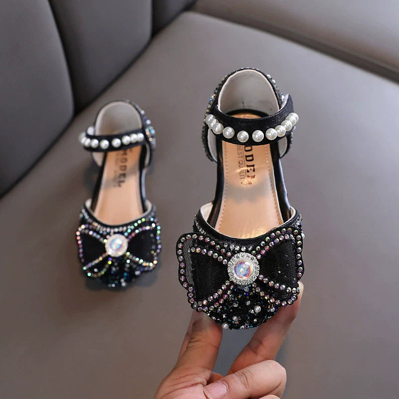 أحذية فيونكة مرصعة بأحجار الراين للفتيات