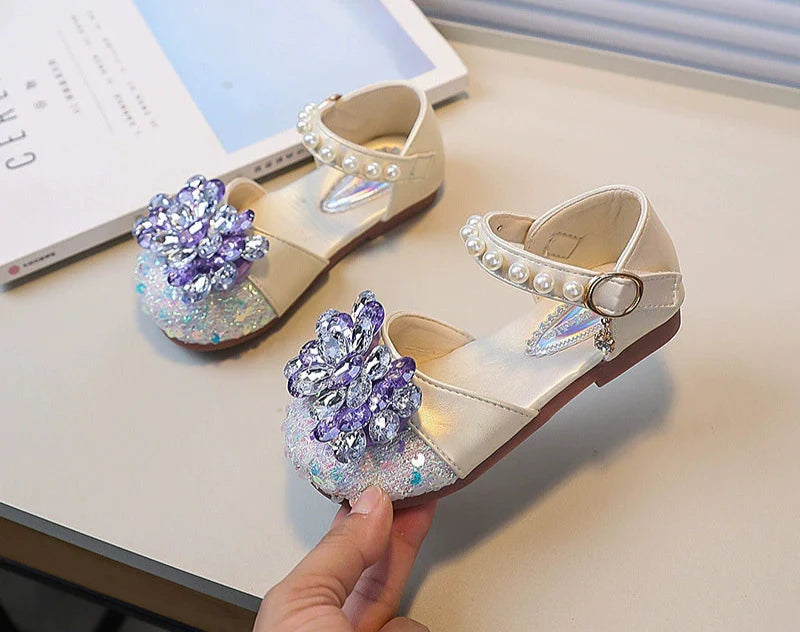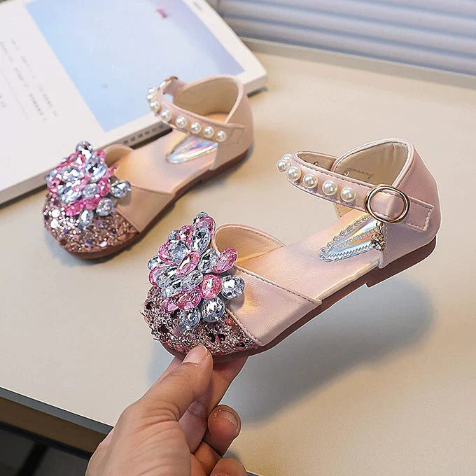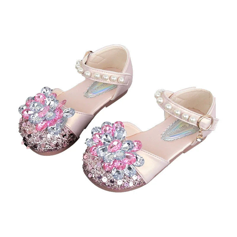 حذاء رياضي لامع مرصع باللؤلؤ للبنات