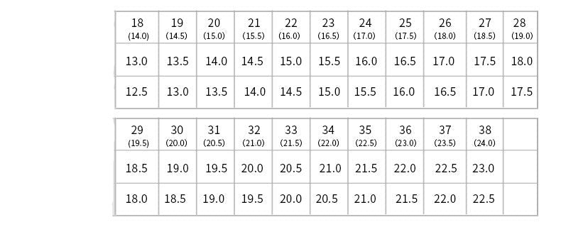 ملاحظة: المقاسات موضحة في الجدول أعلاه. يُرجى اتباع جدول المقاسات بدقة لاختيار المقاس المناسب. قد يختلف اللون قليلاً بسبب اختلاف الإضاءة. يُرجى مراعاة وجود اختلافات طفيفة بسبب القياس اليدوي.