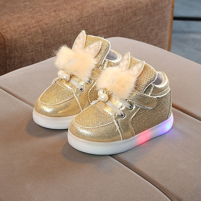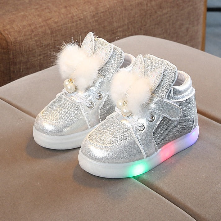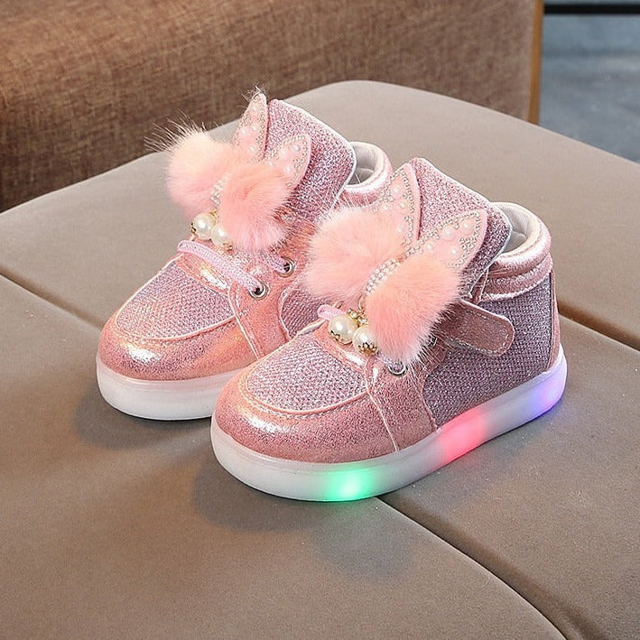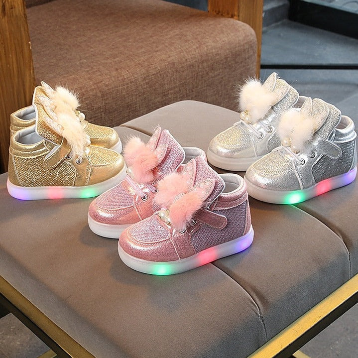 أحذية رياضية لامعة مع فراشة وإضاءة ليد