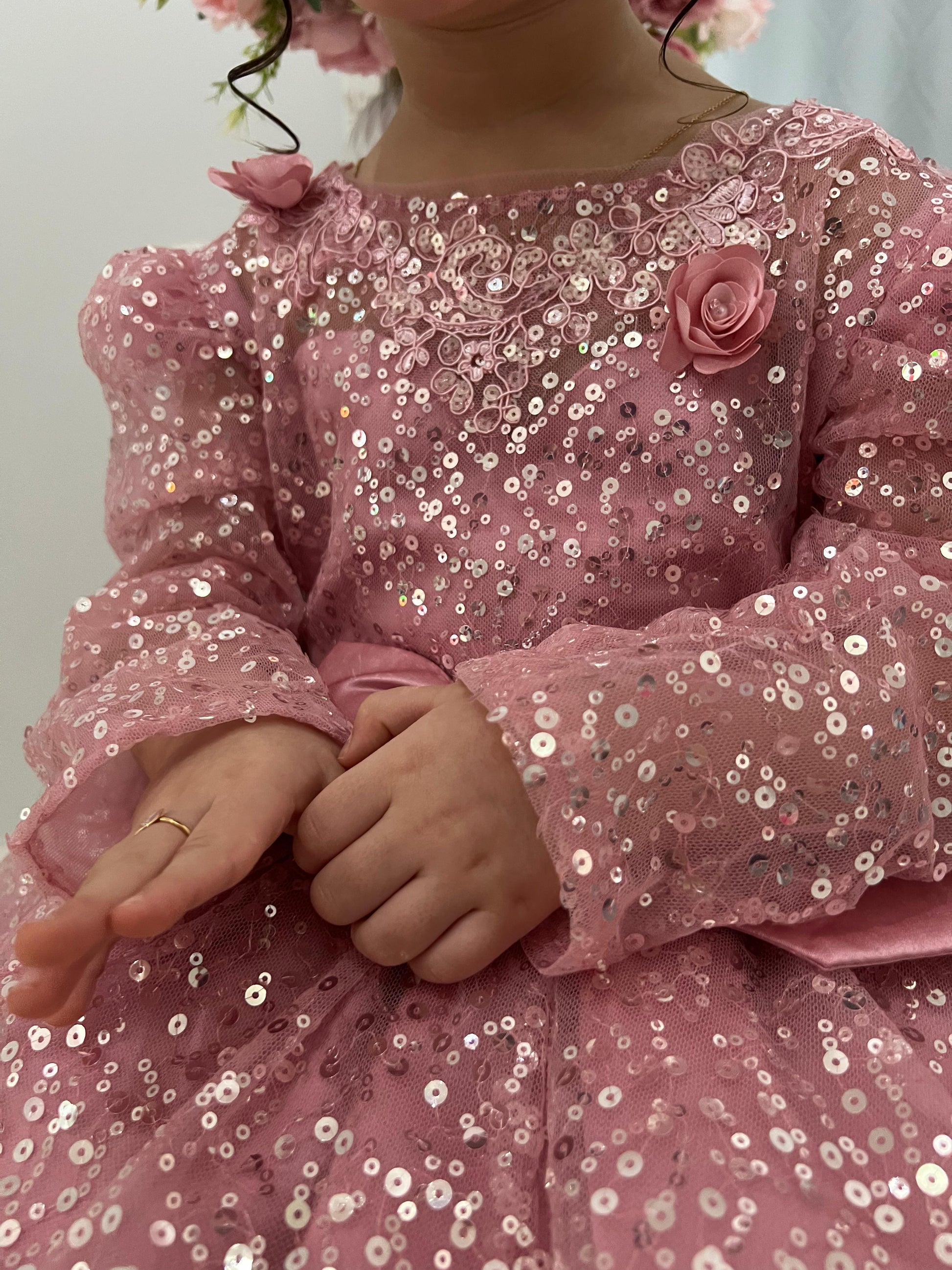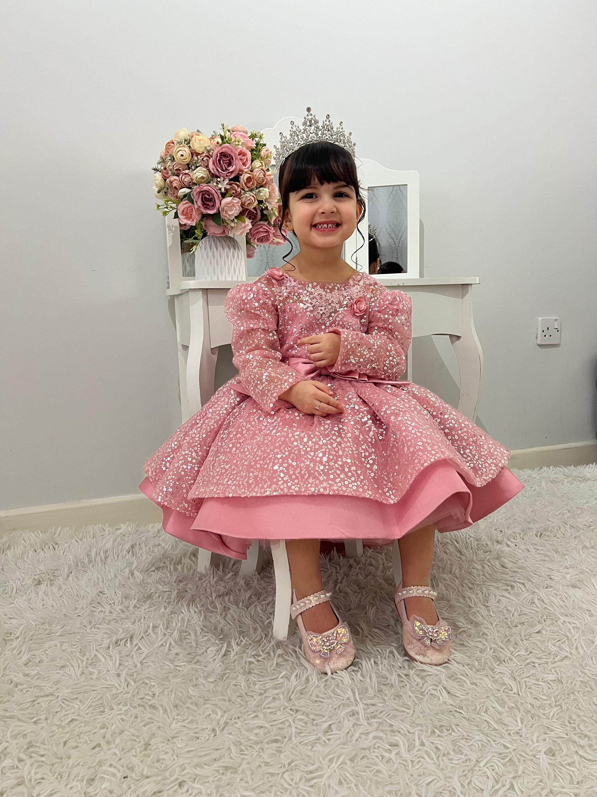 فستان حفلات لامع للبنات مزين بفيونكة