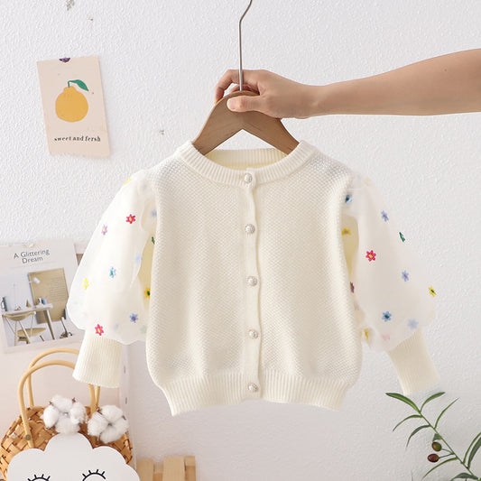 أُوكَازيُونسترة أطفال محبوكة بأكمام مزينة بالزهور