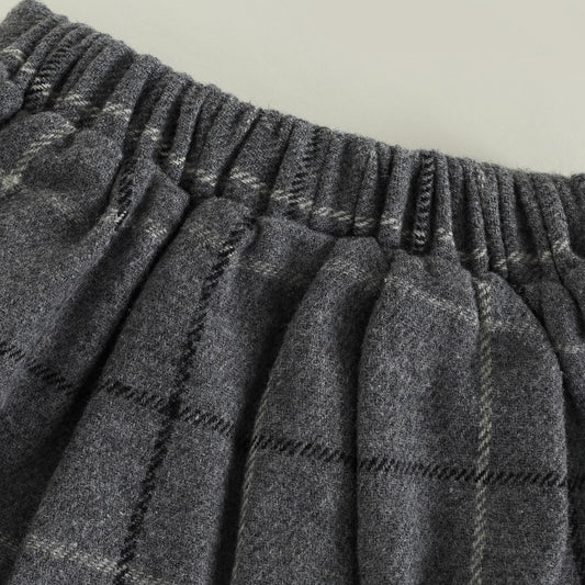 طقم أطفال بلوزة بأكمام طويلة منفوخة + تنورة مطوية بأزرار
