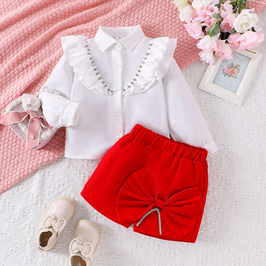 طقم بدلة فيونكة صغيرة للبنات