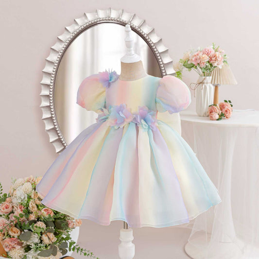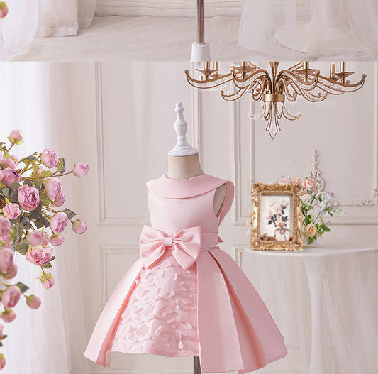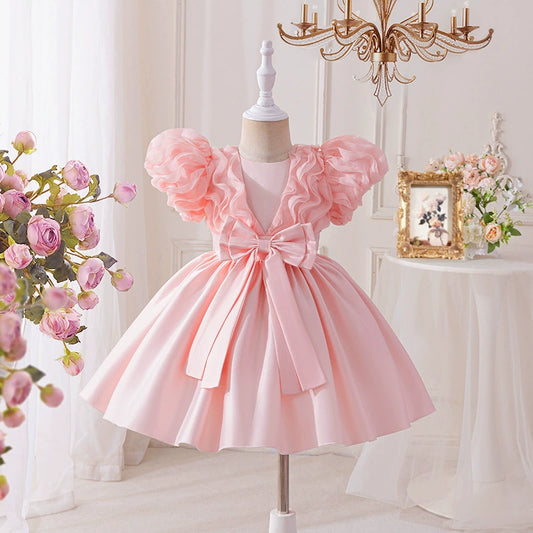 فستان أطفال منتفخ باللون الوردي مع فيونكة