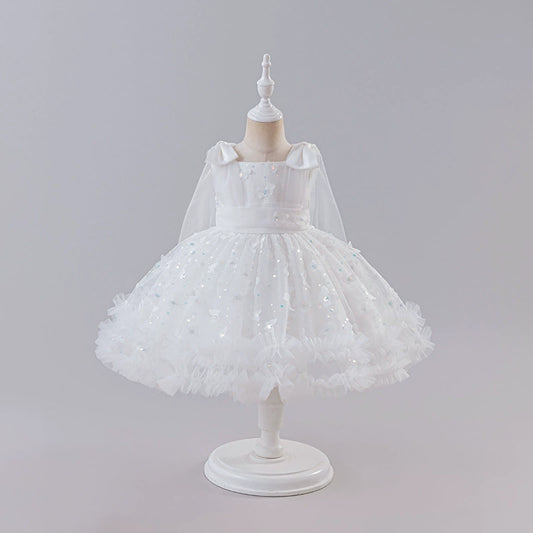 فستان حفلات للأطفال مع اللؤلؤ والتول