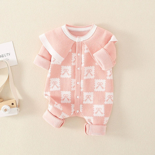 جمبسوت محبوك للأطفال مع ياقة زهرة