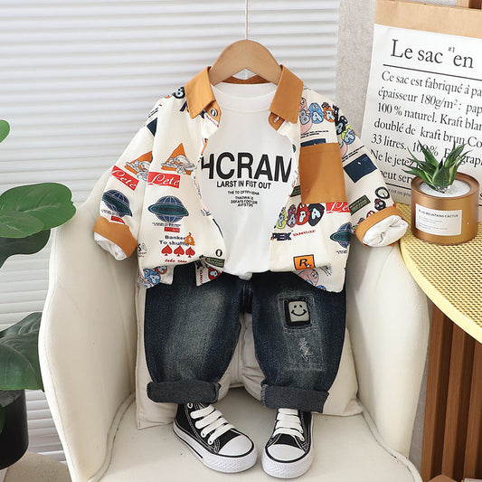 أُوكَازيُونطقم رجالي وأطفالي مكون من 3 قطع قميص وجينز