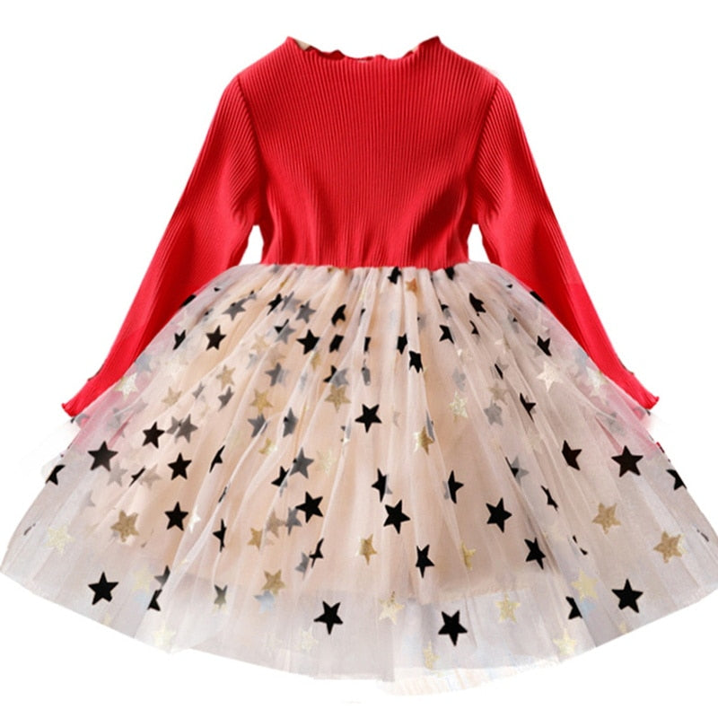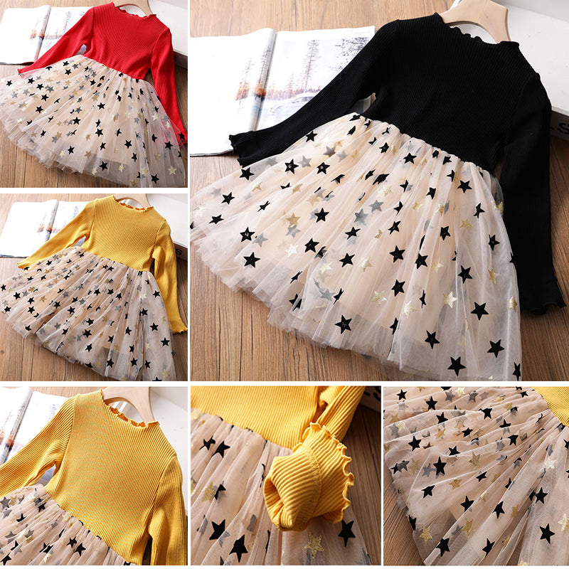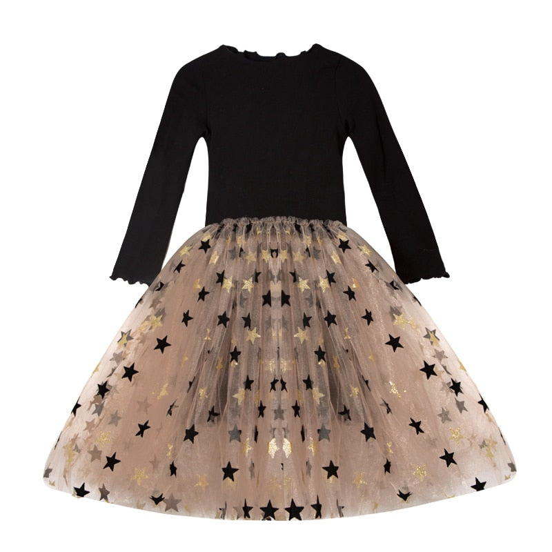 فستان أطفال مع تنورة من التول مع نجوم