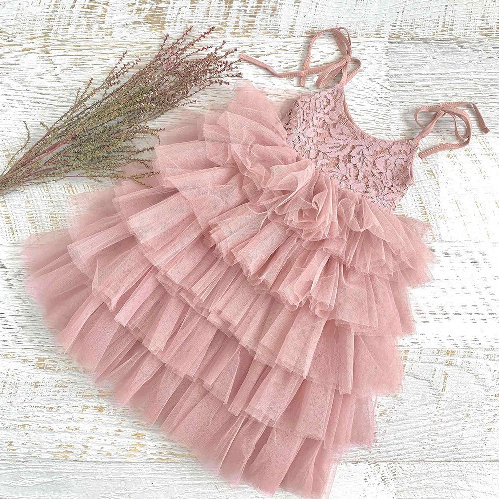 فستان أطفال مع تنورة من التول متعدد الطبقات