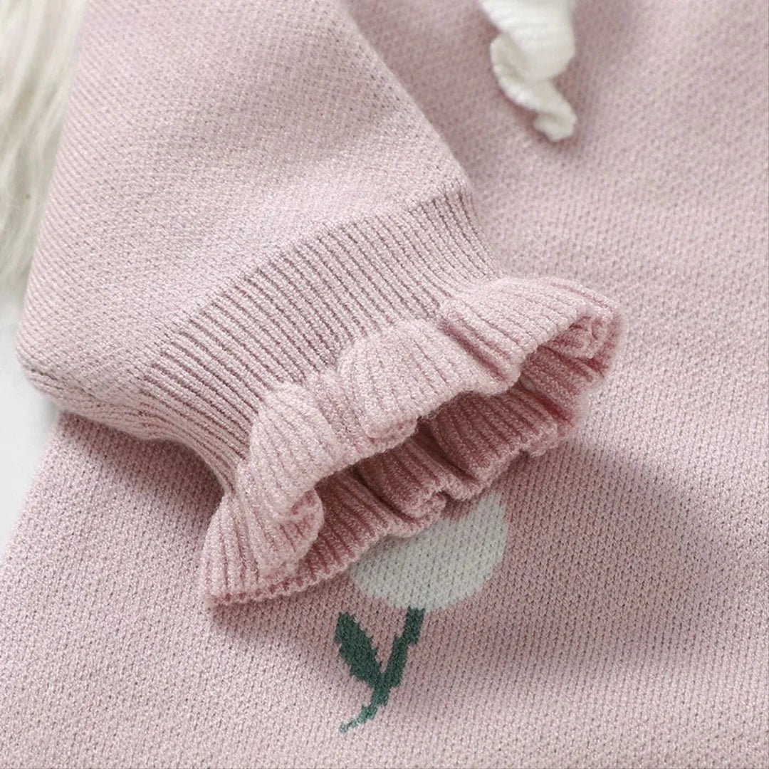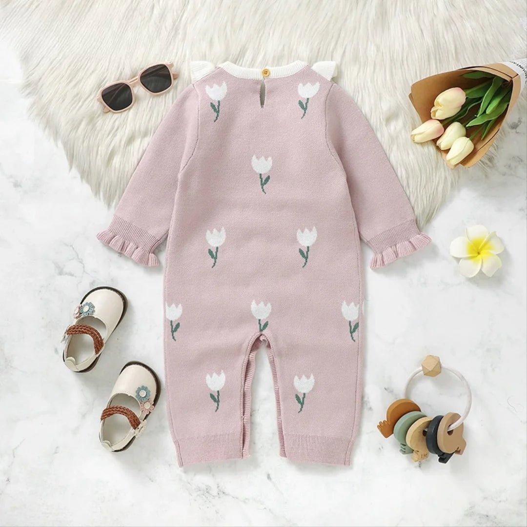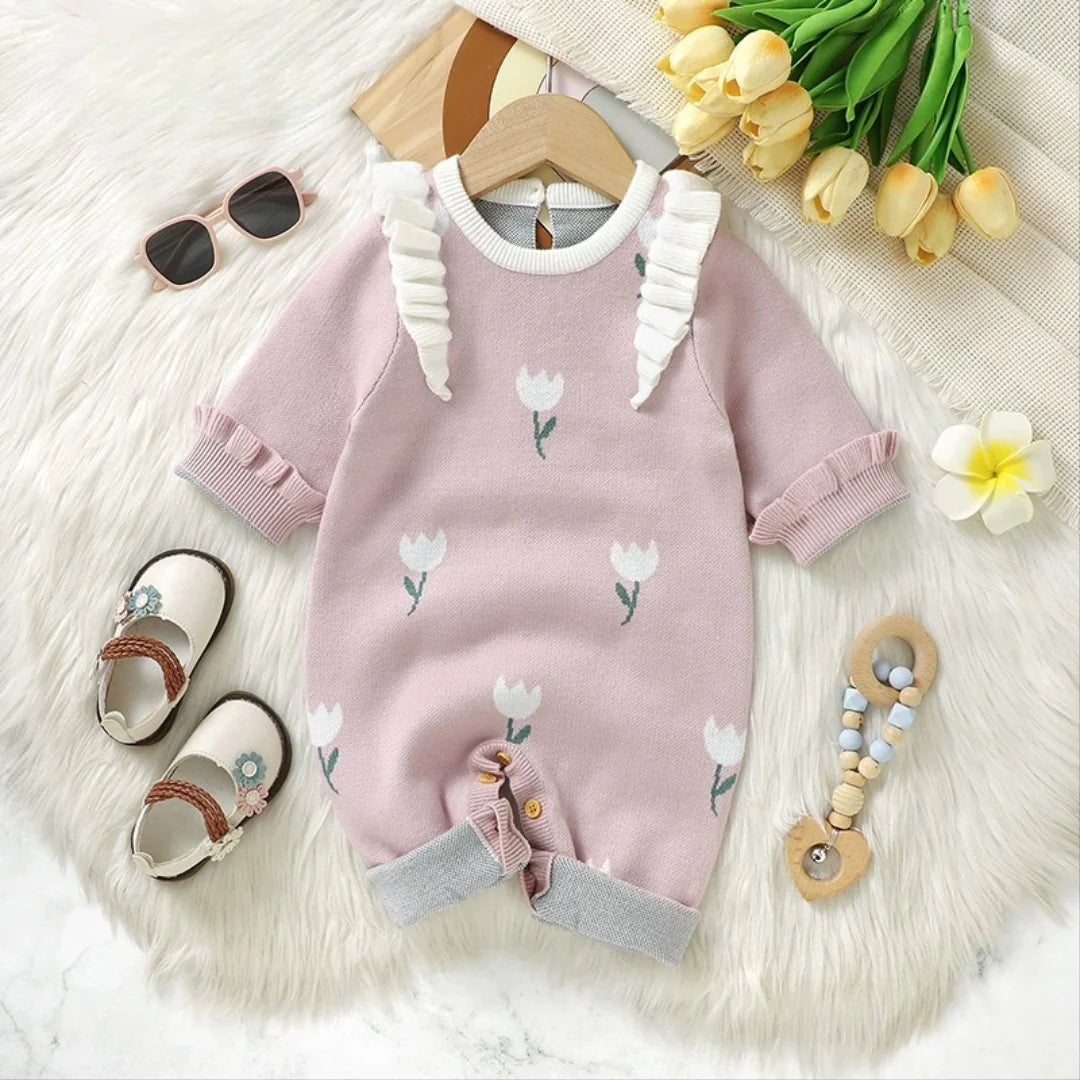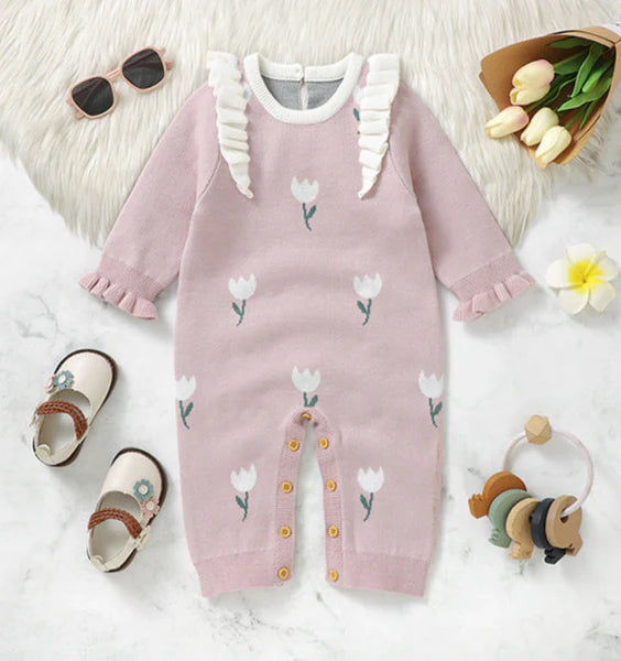 جمبسوت أطفال محبوك مزين بالزهور