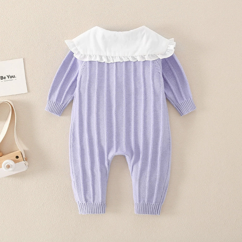 جمبسوت محبوك للأطفال مع ياقة زهرة