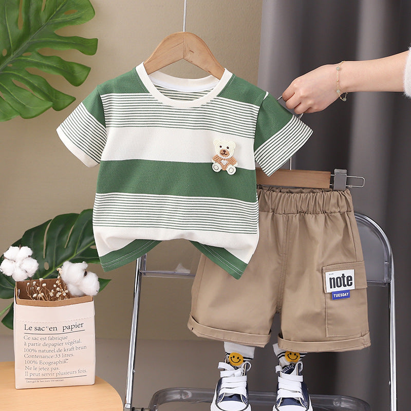 ✅الموديل: طقم رجالي للأطفال بخطوط الدب