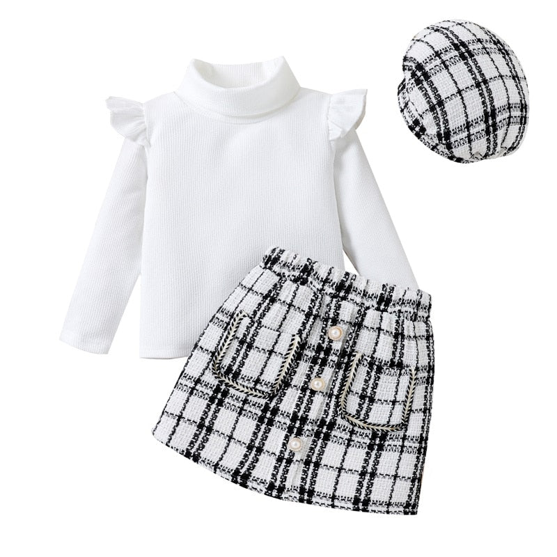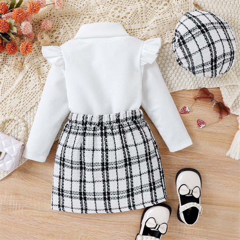 طقم أطفال مع بلوزة ذات رقبة مدورة وقبعة