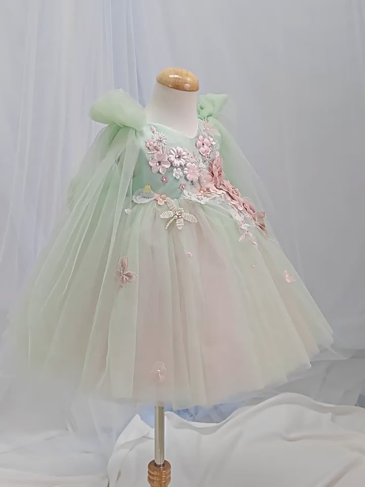 فستان حفلة للأطفال باللون الأخضر من Enchanted Garden