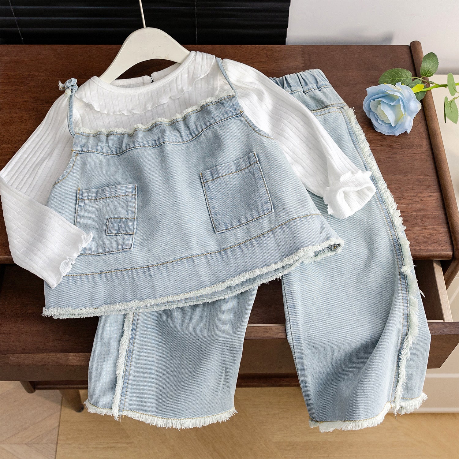 طقم جينز للأطفال البنات مكون من 3 قطع
