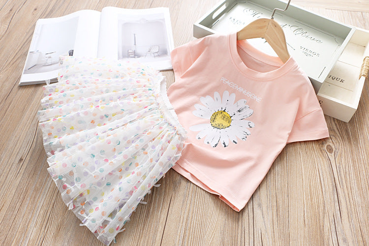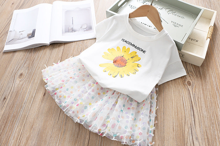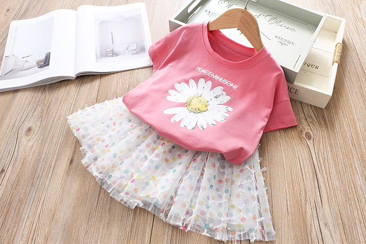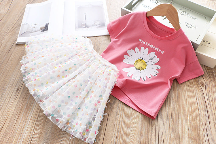 طقم تنورة من التول والزهور للبنات