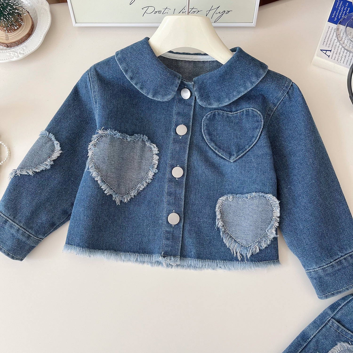 طقم جينز للبنات الرضع بنقشة قلوب