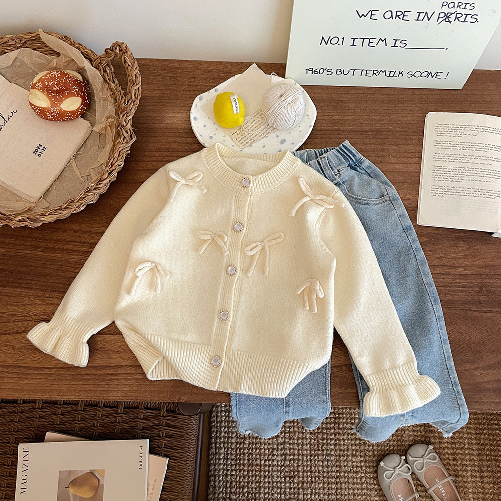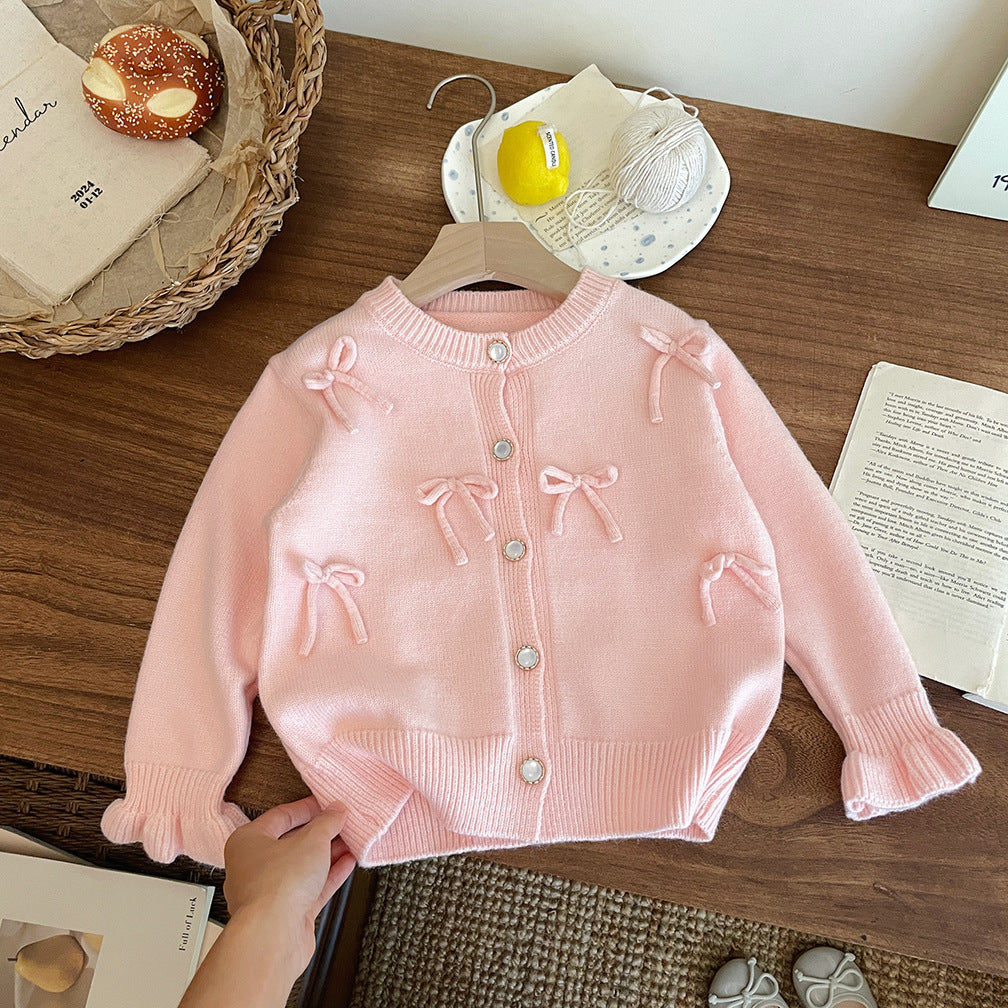 معطف محبوك بعقدة فيونكة للبنات