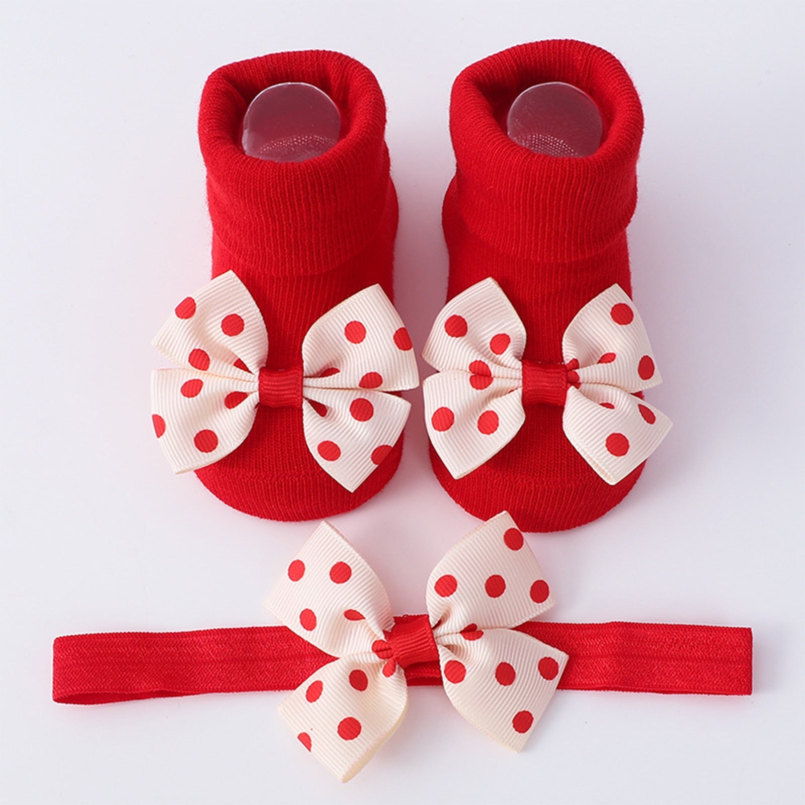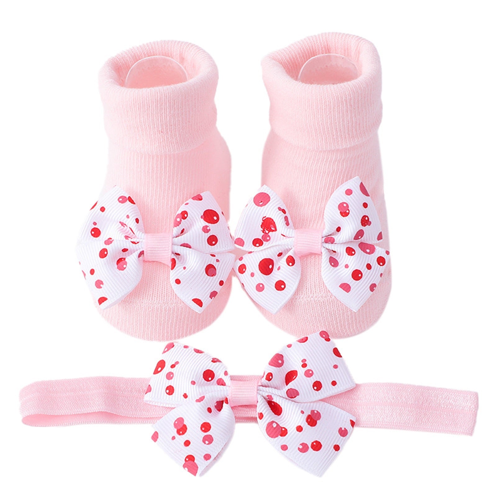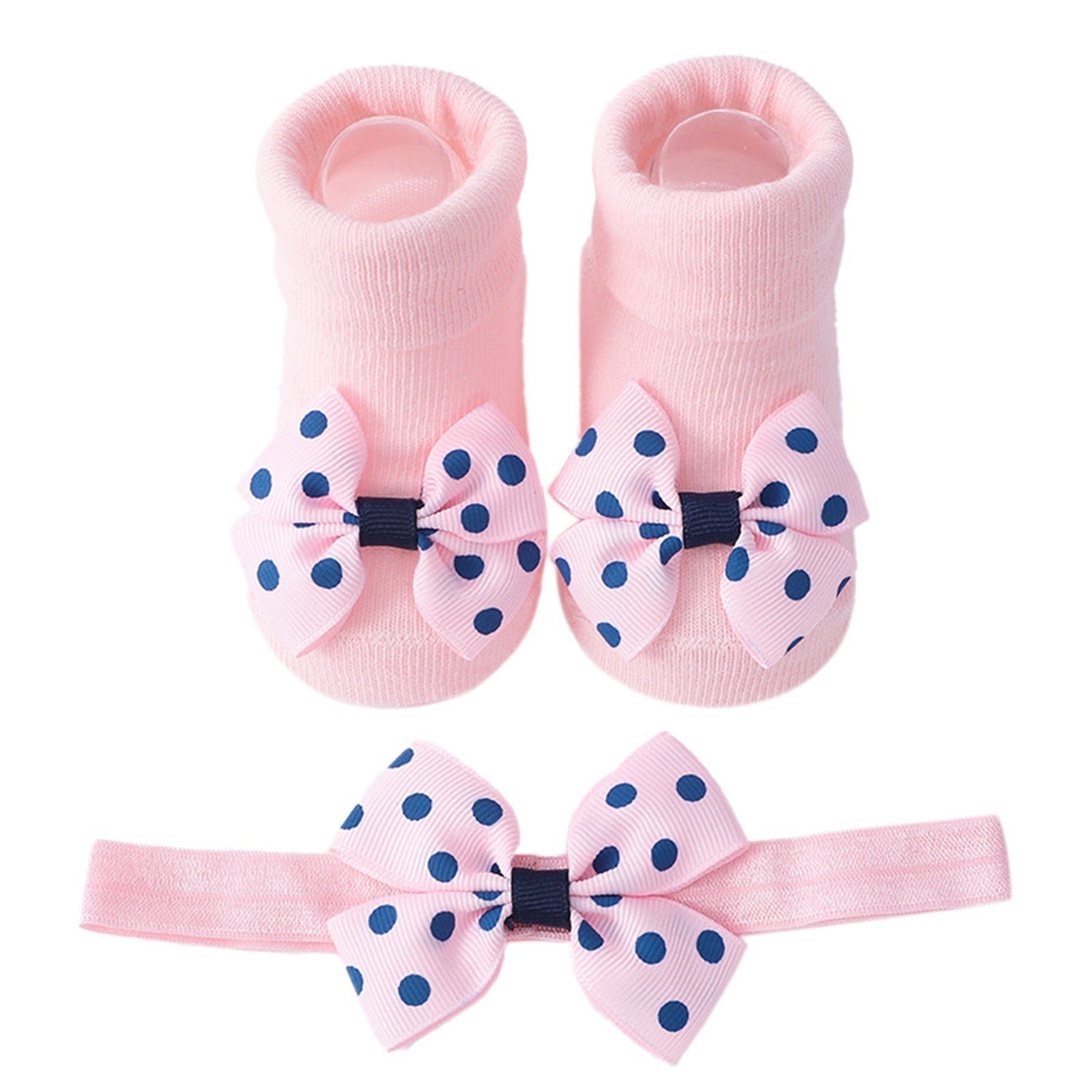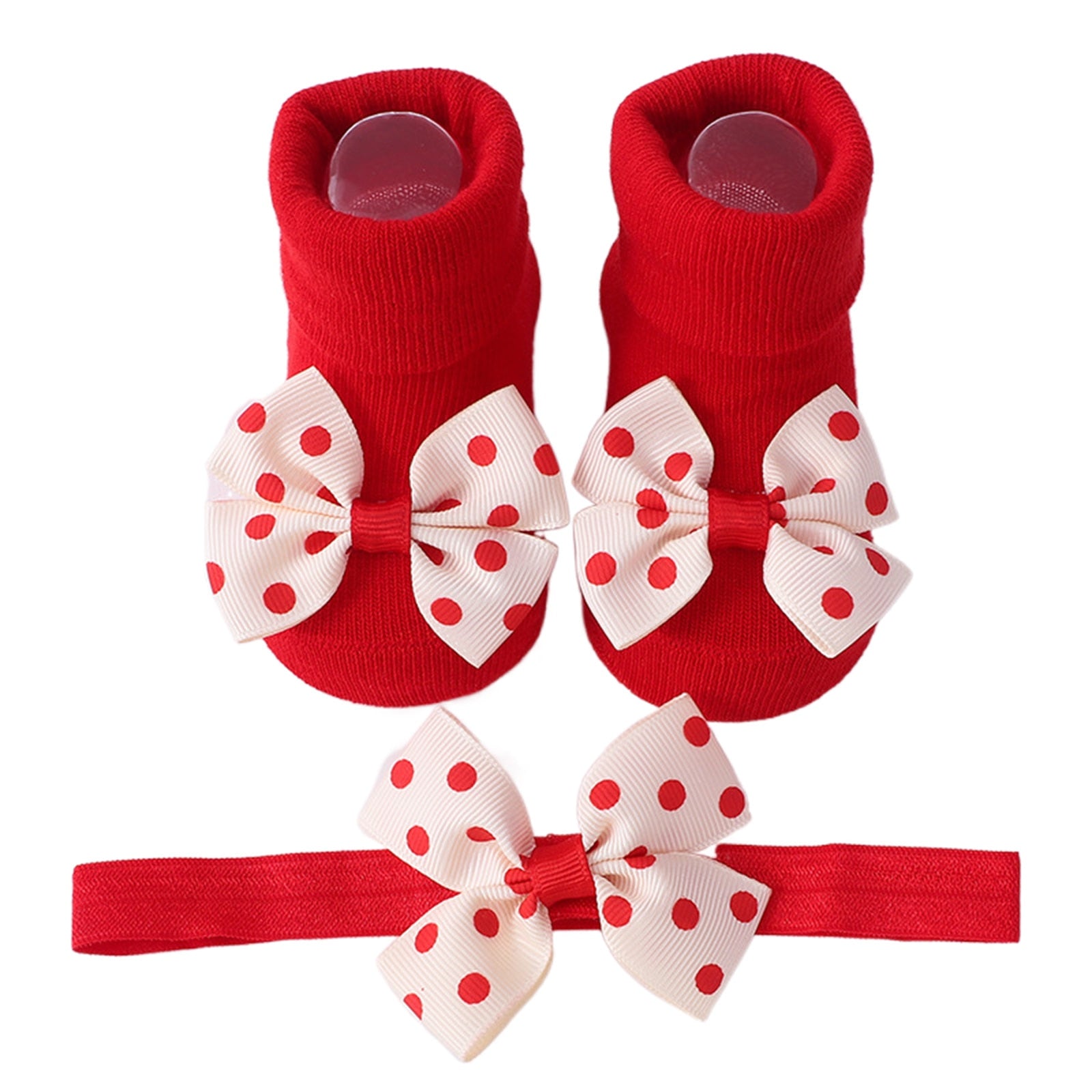 جورب دانتيل للأطفال غير قابل للانزلاق + عصابة رأس