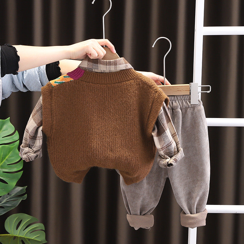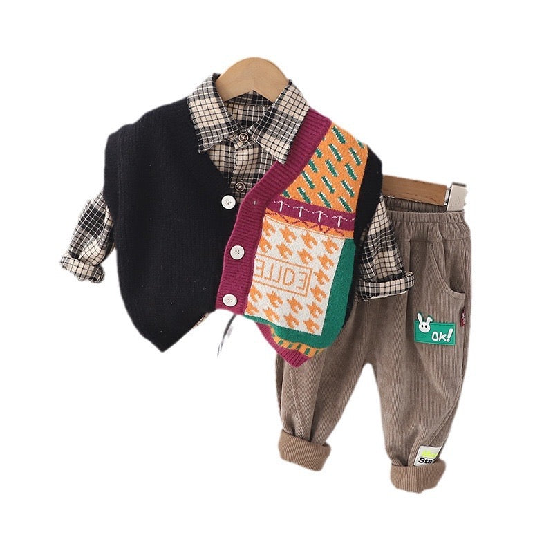 ✅ الموديل: طقم أطفال رجالي مكون من 3 قطع مع قميص