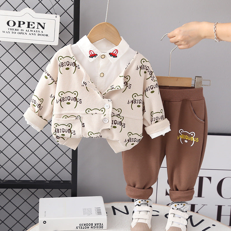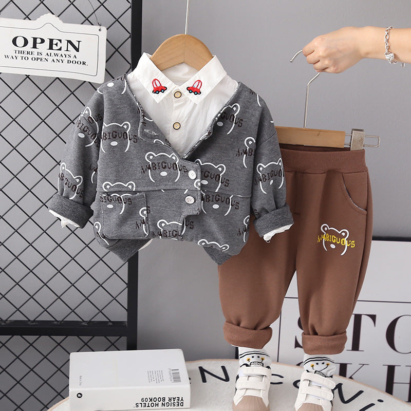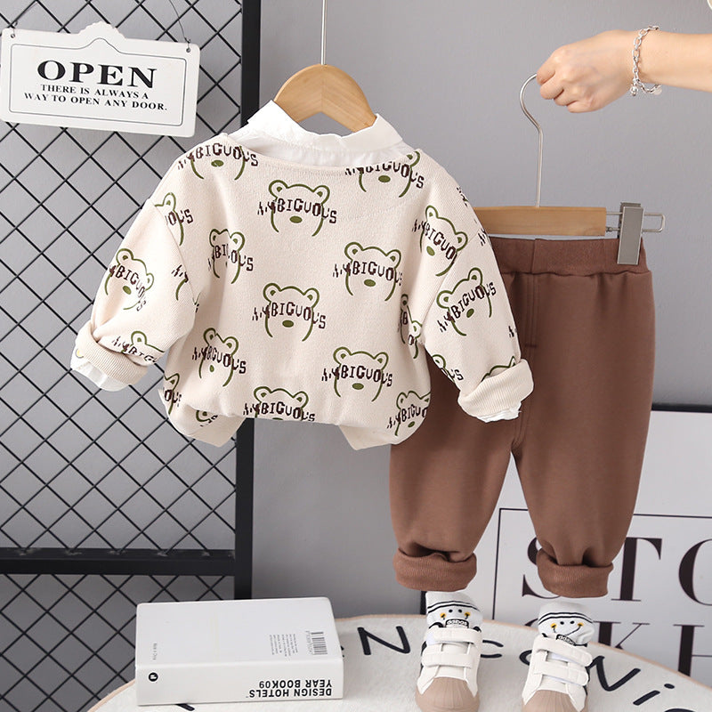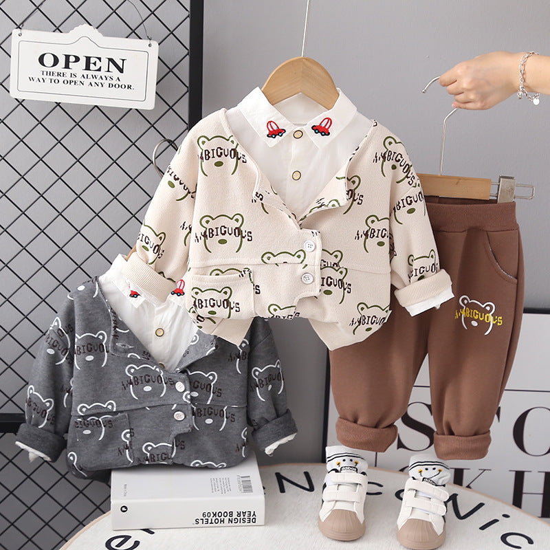 ✅الموديل: طقم قميص دب للأطفال من 3 قطع للرجال