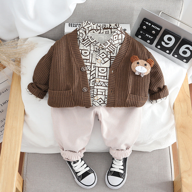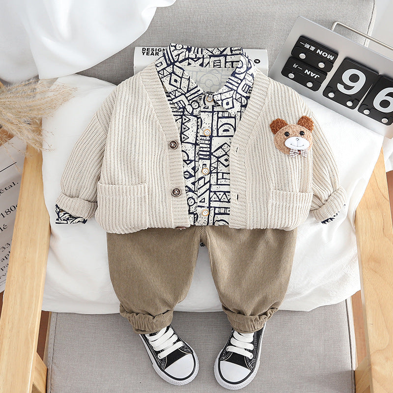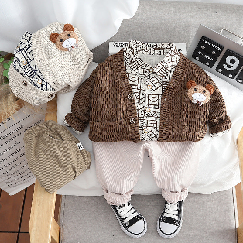 ✅ طقم رجالي وأطفالي مكون من 3 قطع دب محبوك