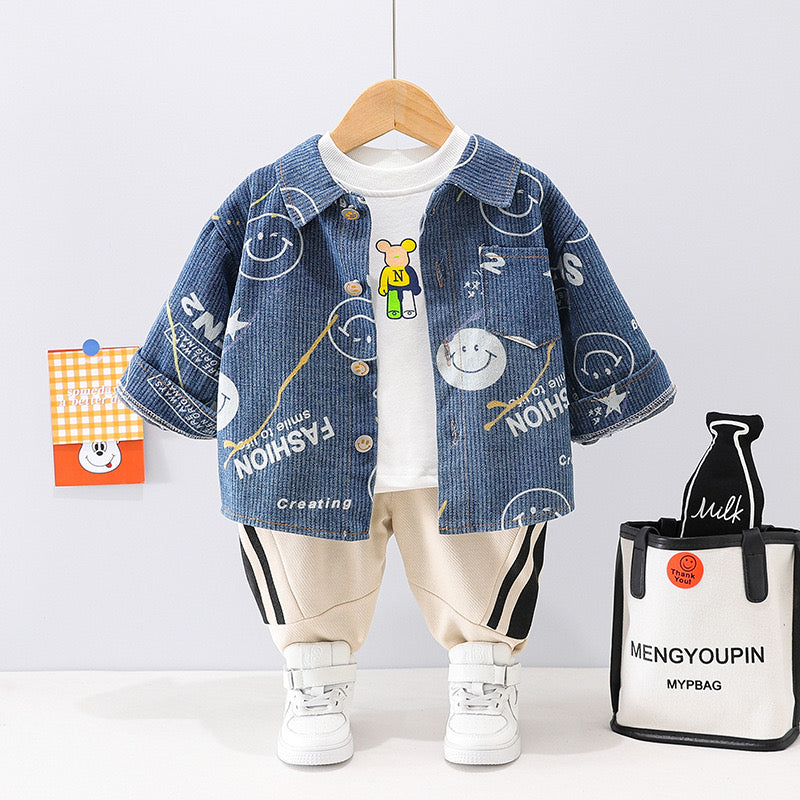 ✅الموديل: طقم رجالي للأطفال مكون من 3 قطع بنطلون لينتراس