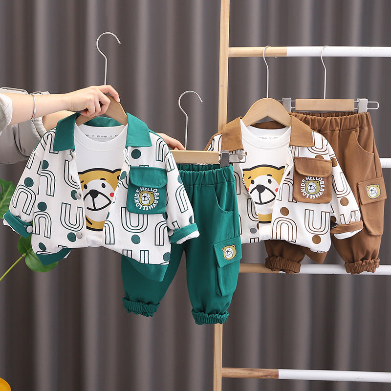✅ طقم رجالي للأطفال مكون من 3 قطع على شكل دب.