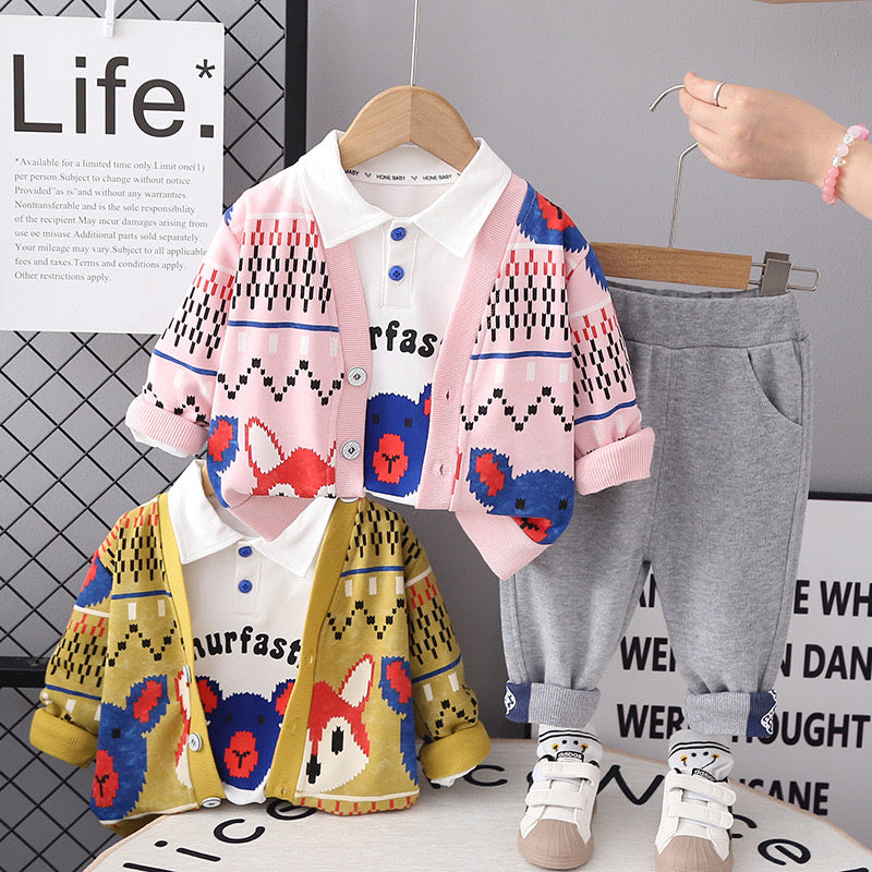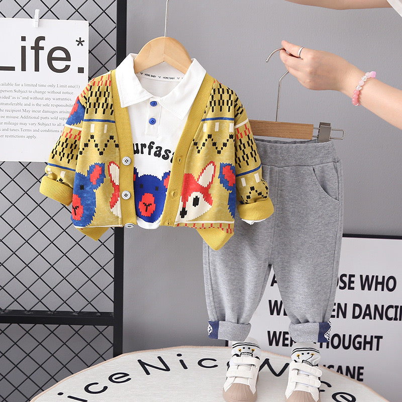 طقم رجالي وأطفالي 3 قطع ثعلب
