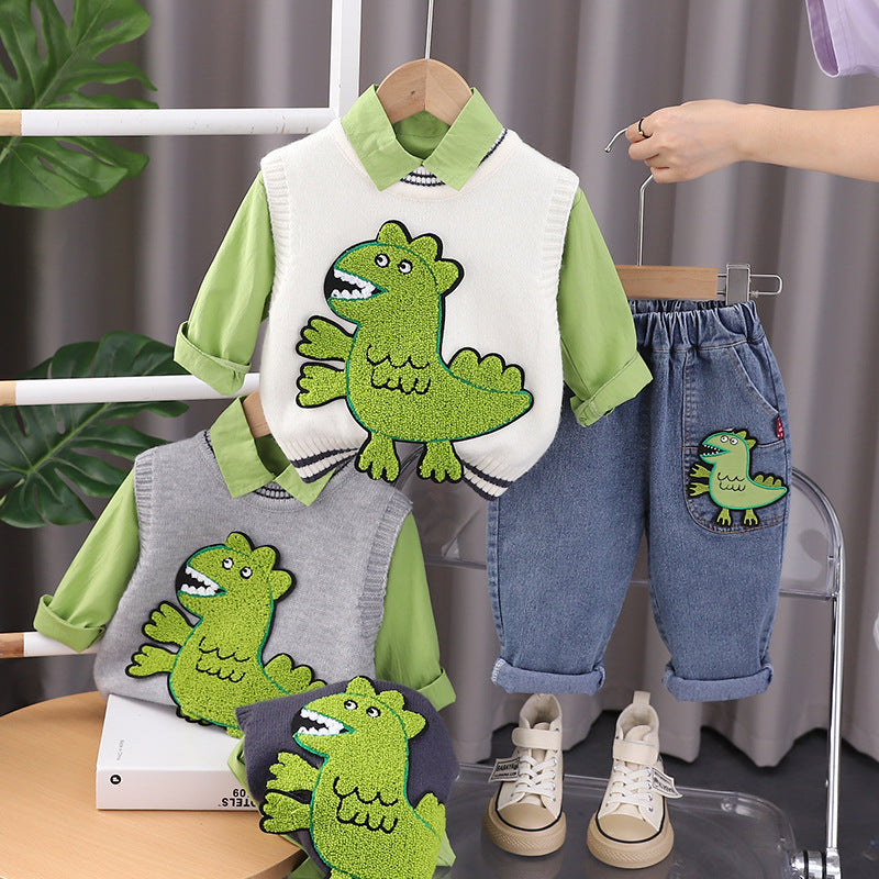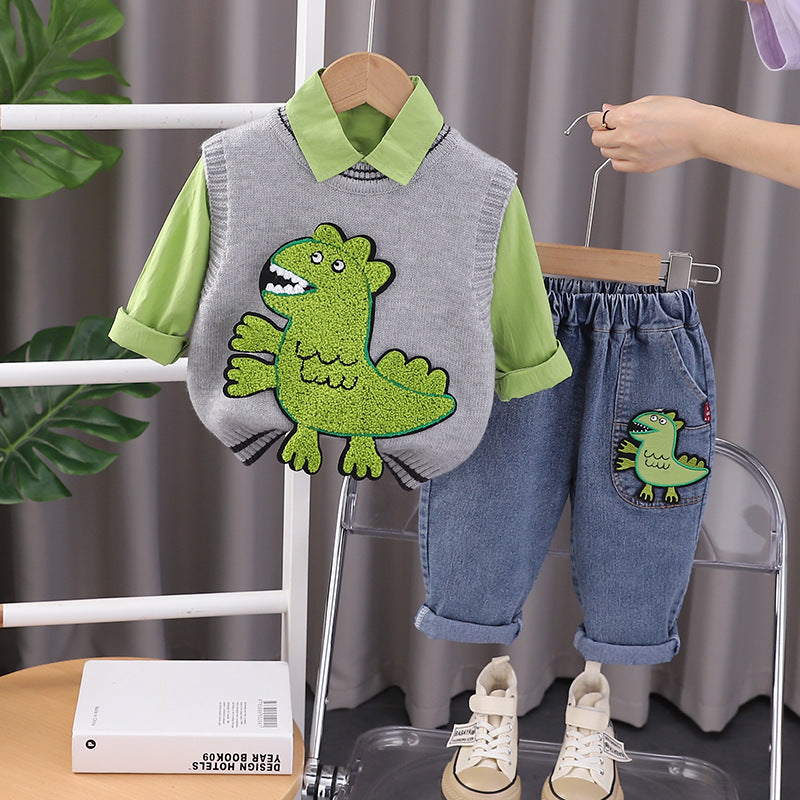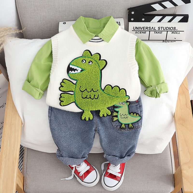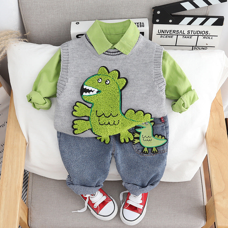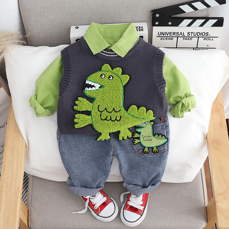طقم رجالي وأطفالي 3 قطع ديناصور أخضر