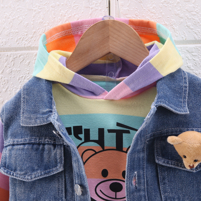 طقم رجالي وأطفالي مكون من 3 قطع جينز وسترة