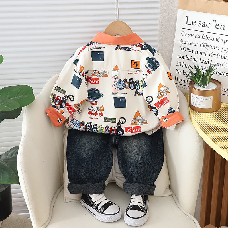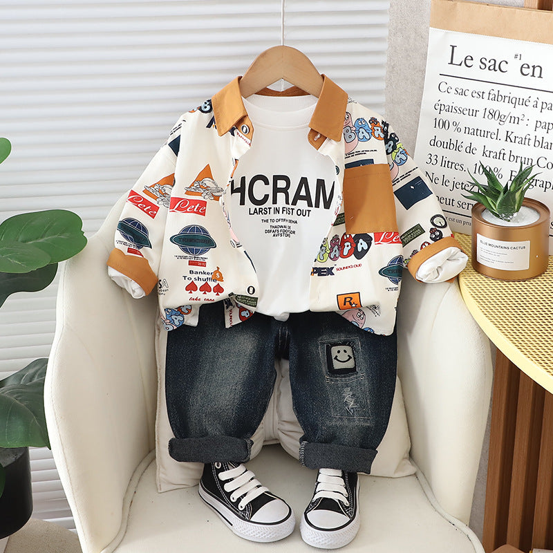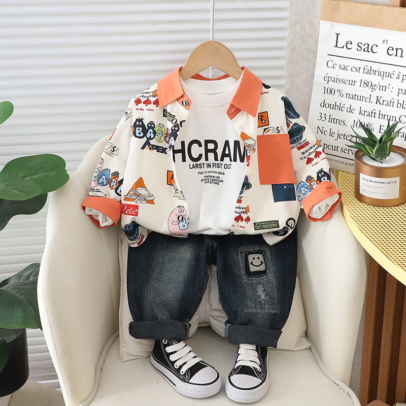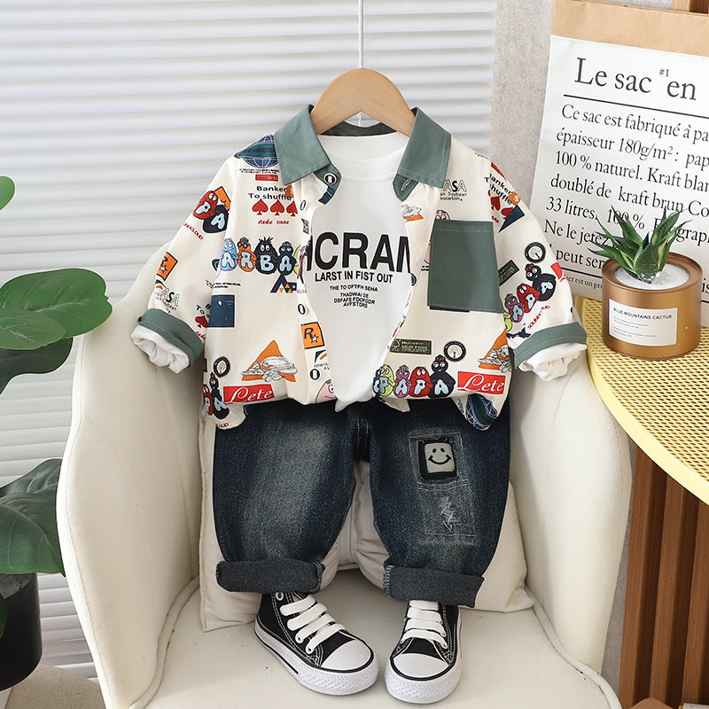 طقم رجالي وأطفالي مكون من 3 قطع قميص وجينز
