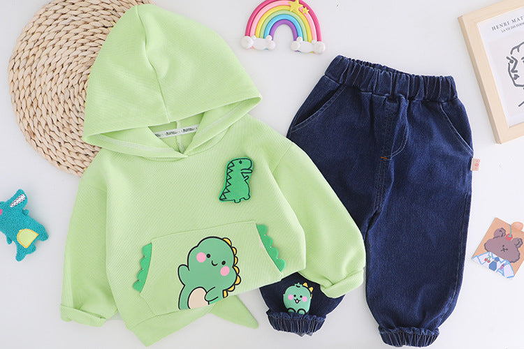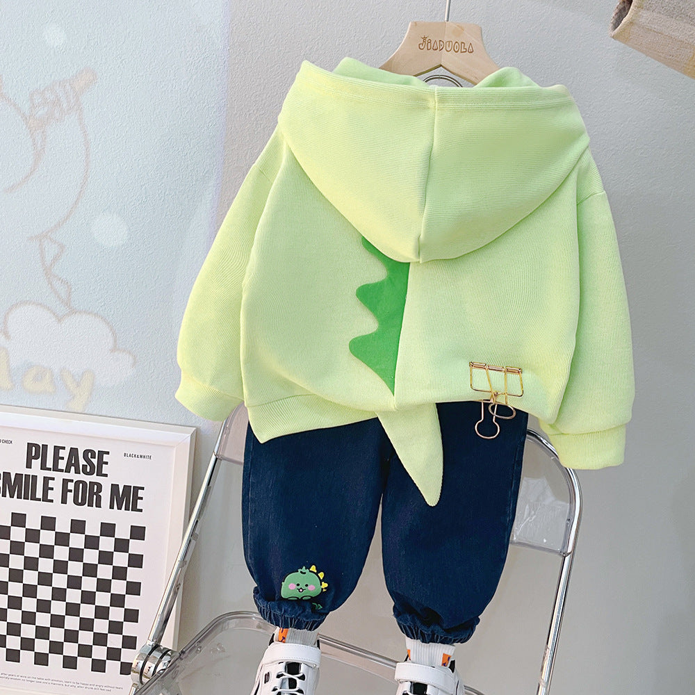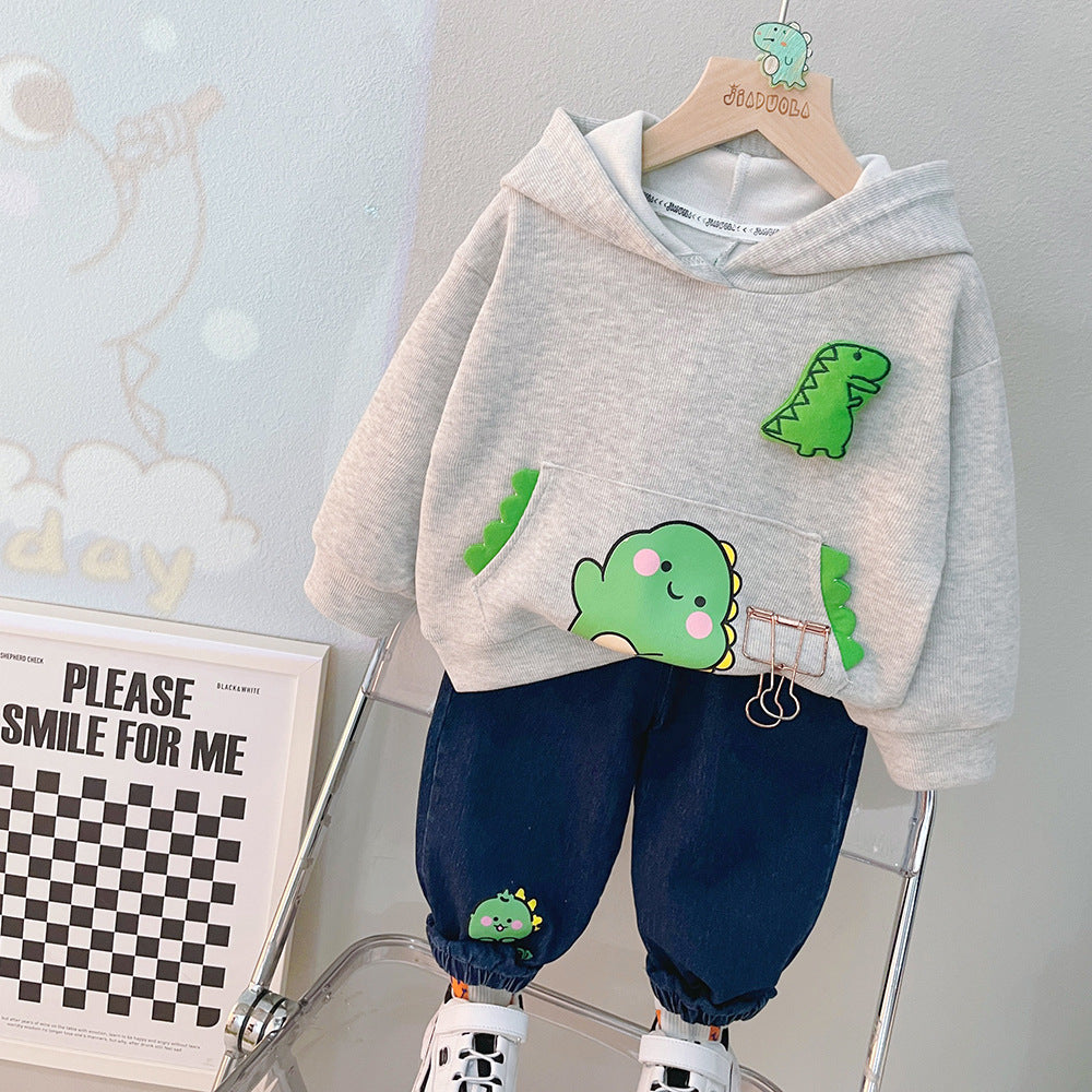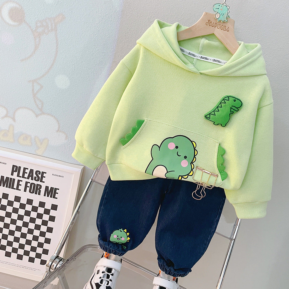 ✅ الموديل: طقم حقيبة ديناصور للأطفال والرجال مع بنطلون جينز