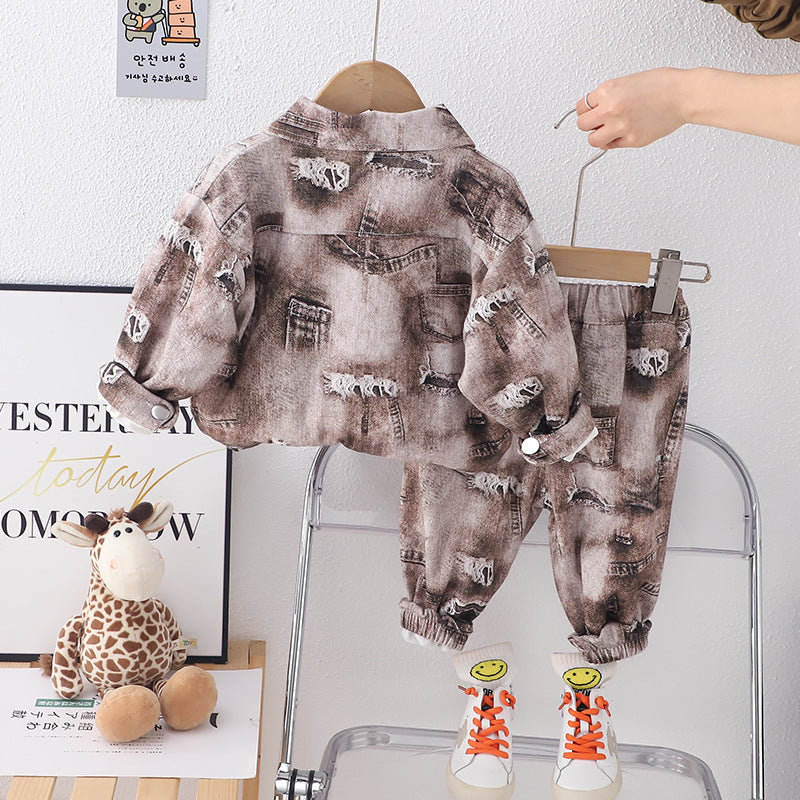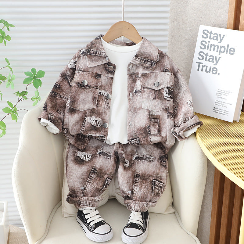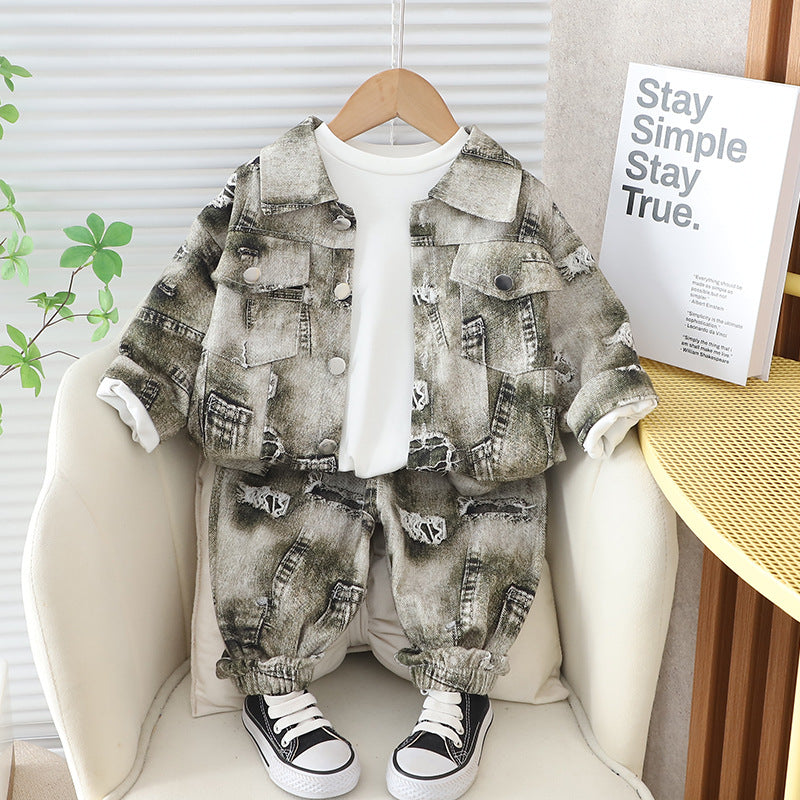طقم جينز رجالي وأطفالي حديث 3 قطع