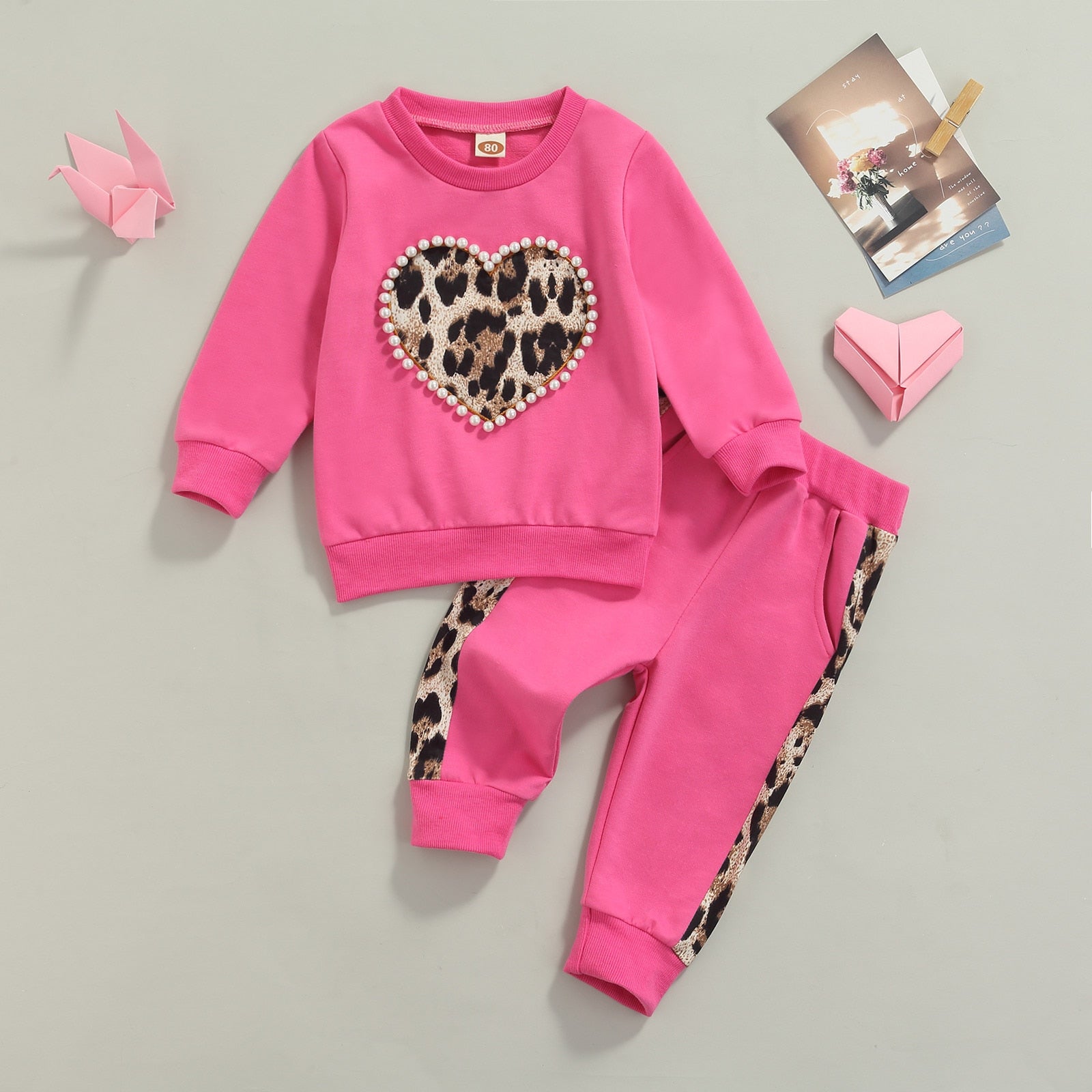 مجموعة أطفال وردية اللون مع قلب
