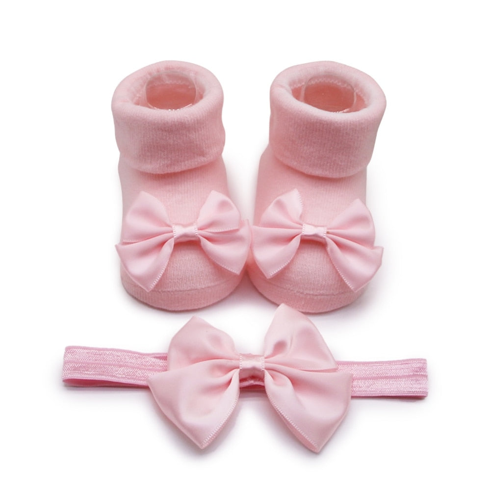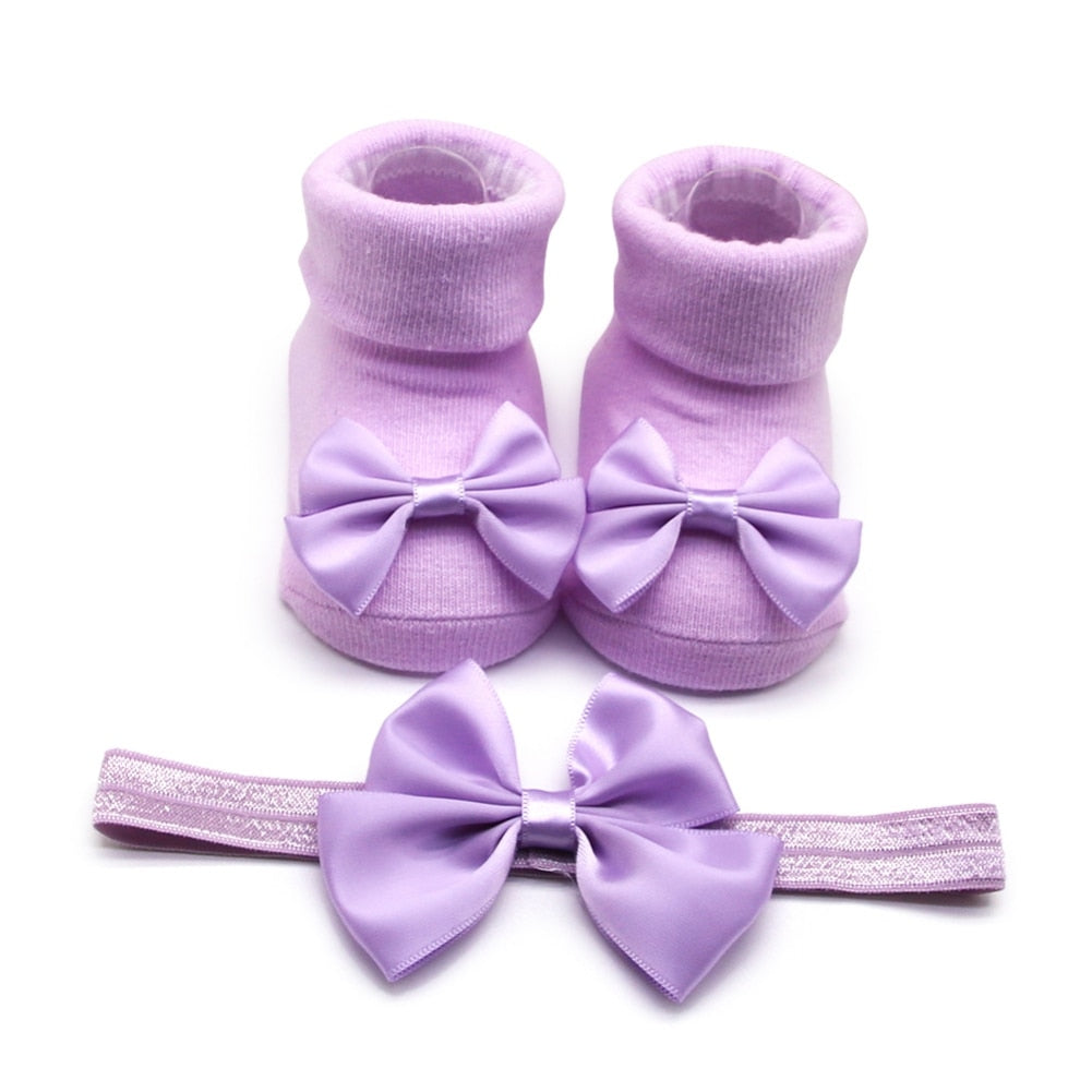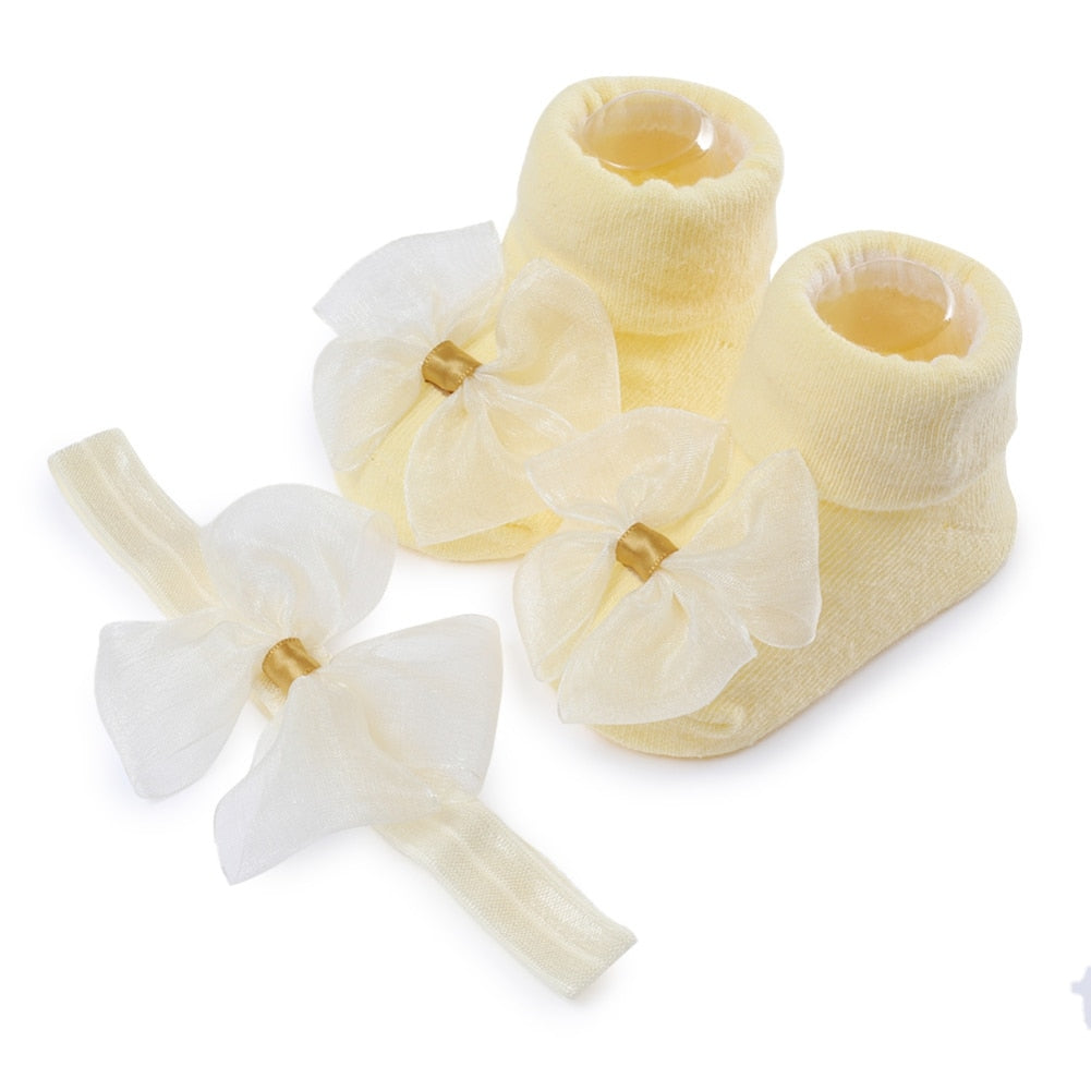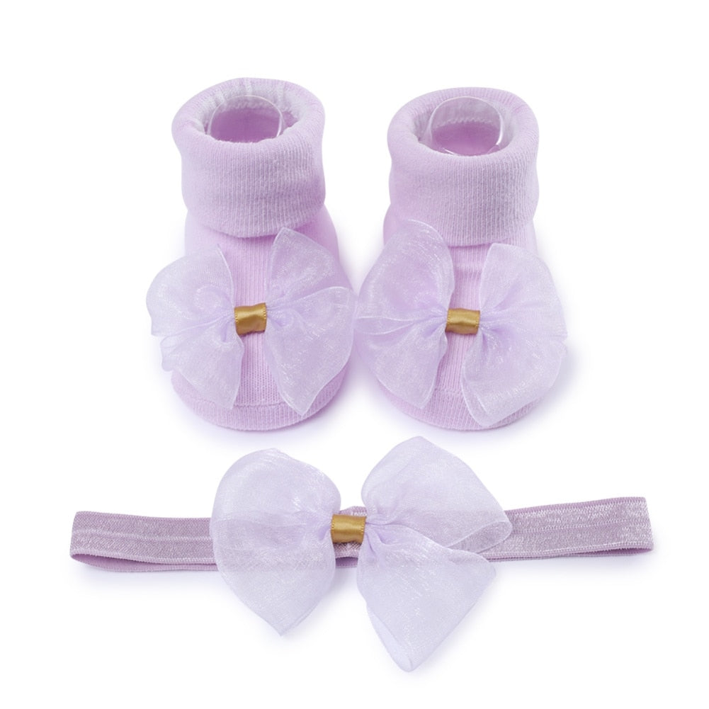 جورب + عصابة رأس على شكل فيونكة للأطفال