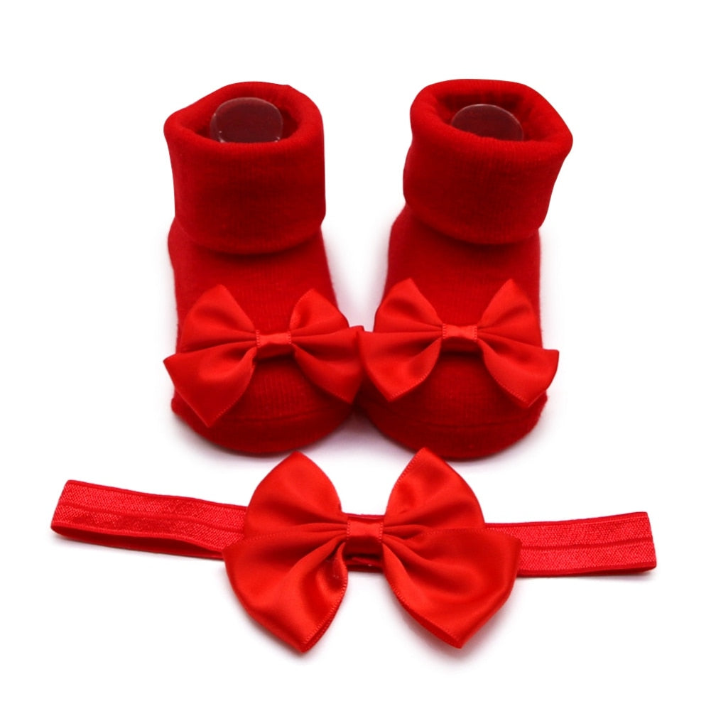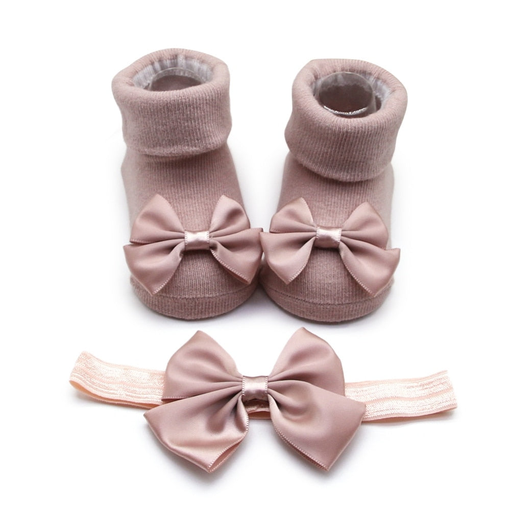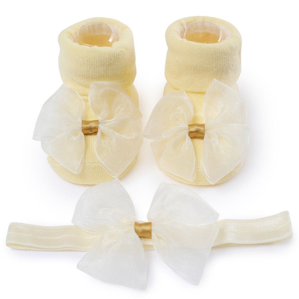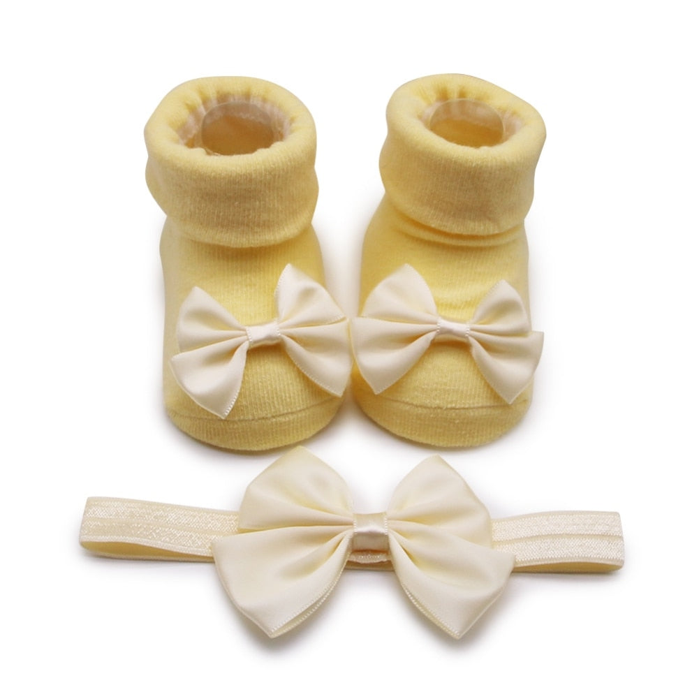 جورب + عصابة رأس على شكل فيونكة للأطفال