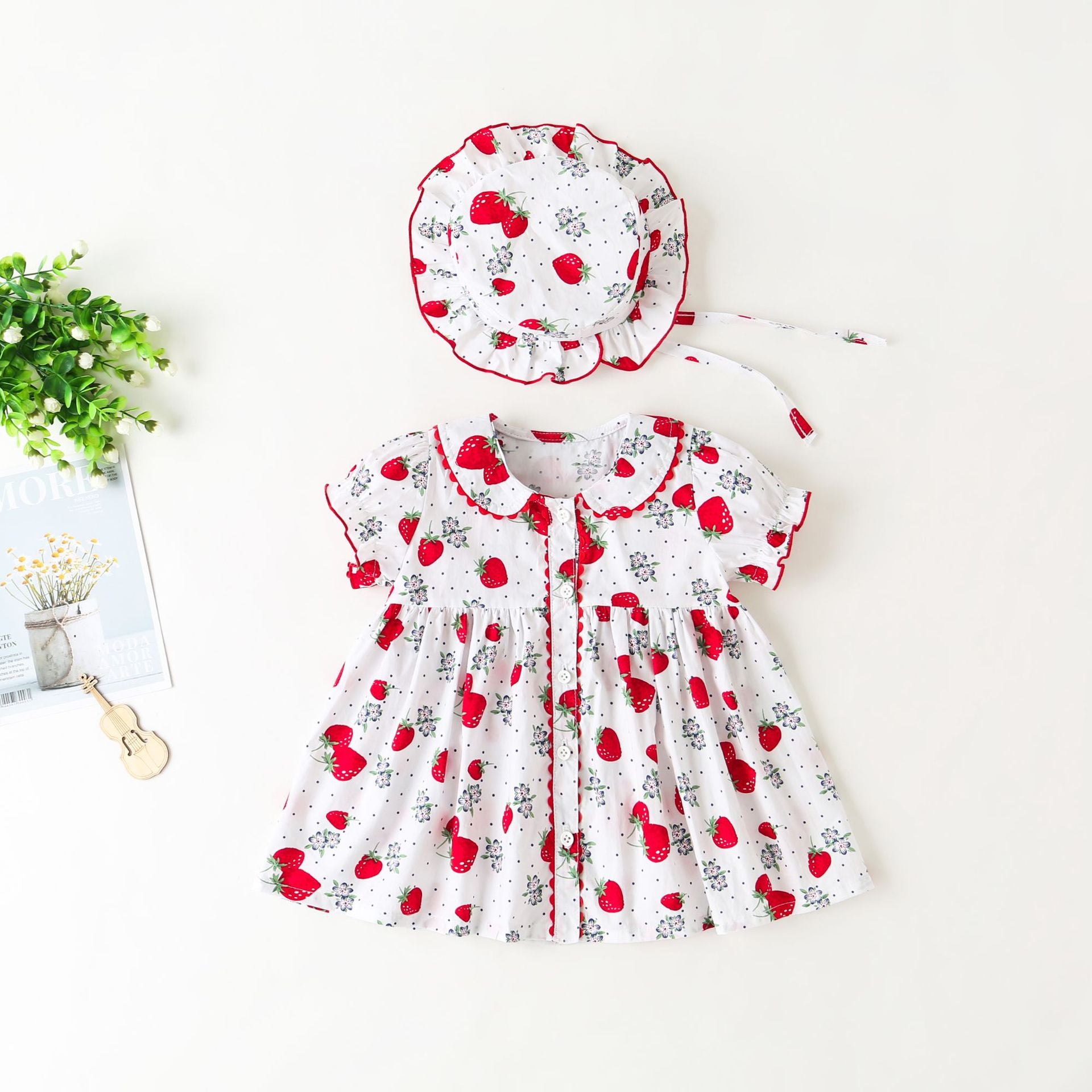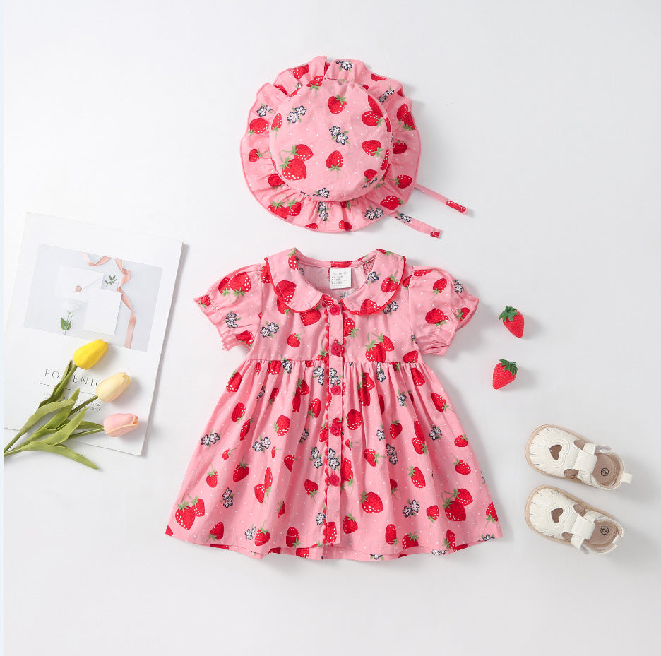 فستان صيفي للأطفال بتصميم كعكة الفراولة القصيرة