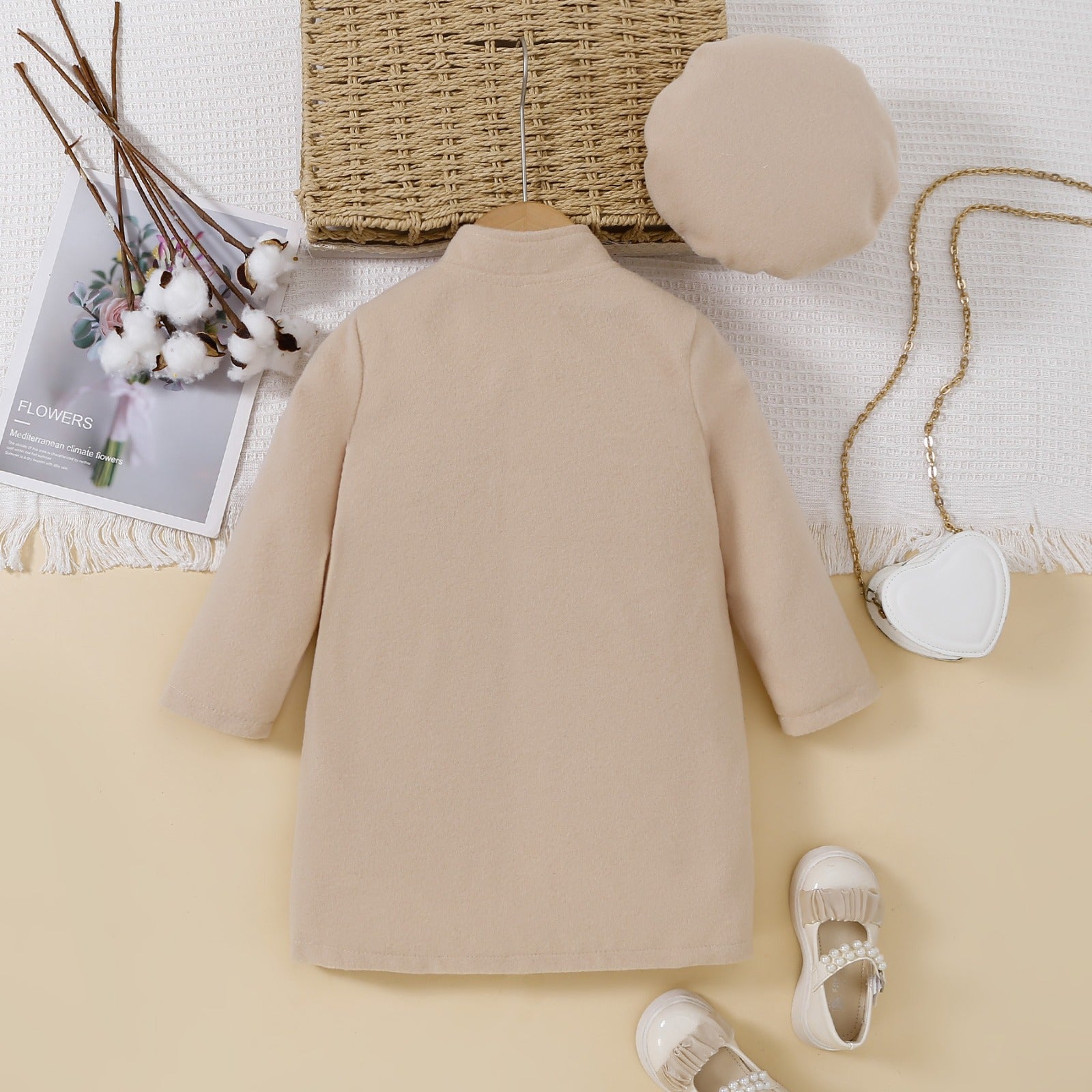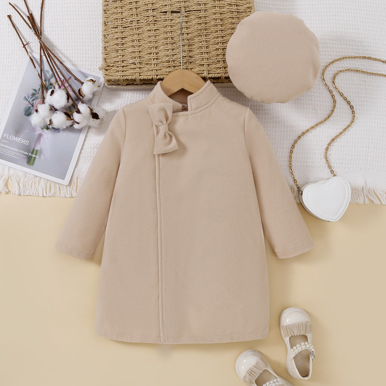 معطف بناتي مع تفاصيل فيونكة وقبعة