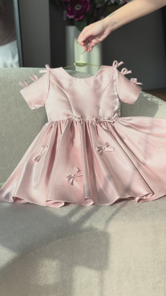 Pink Children's Party Dress with Bows